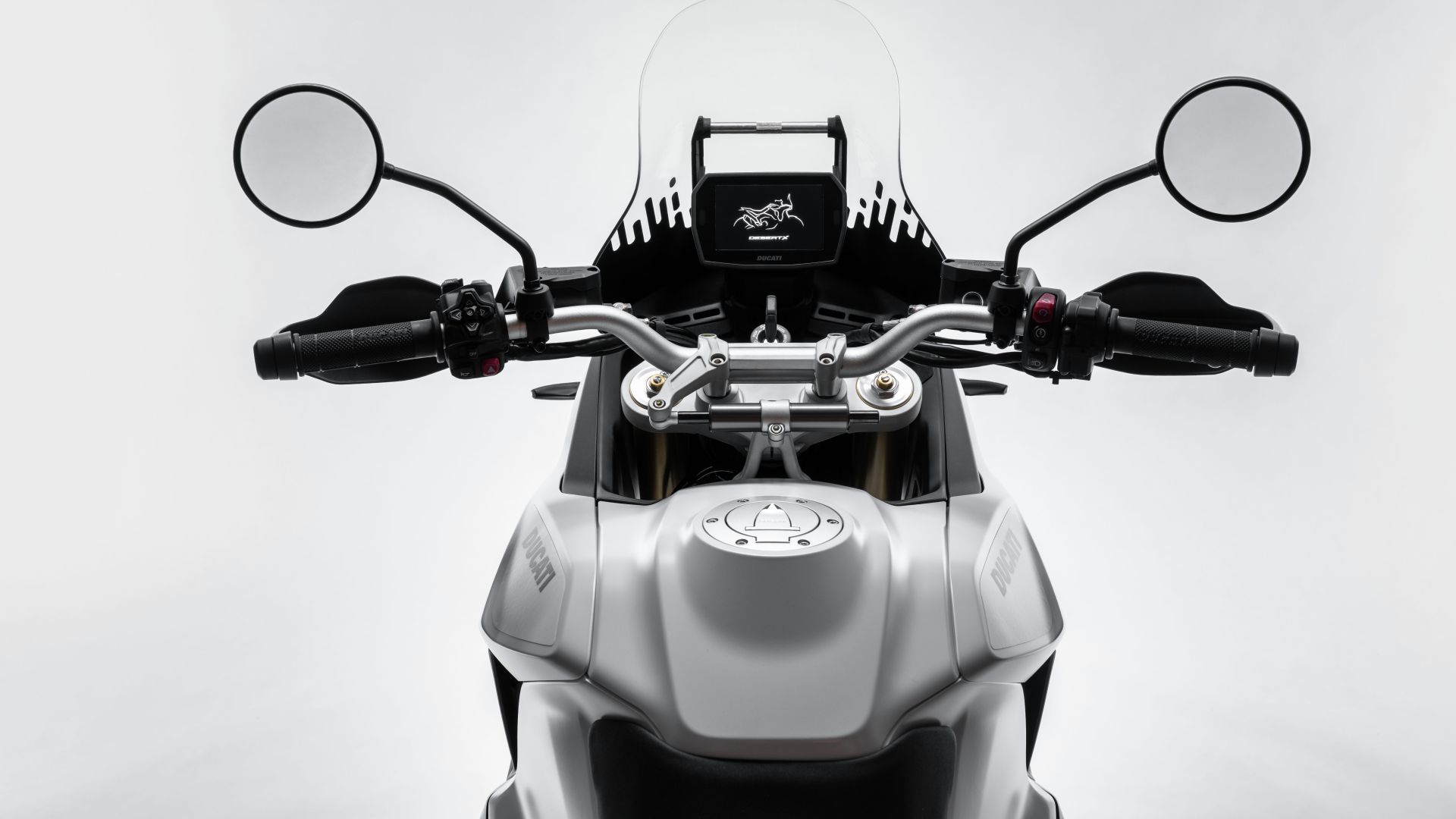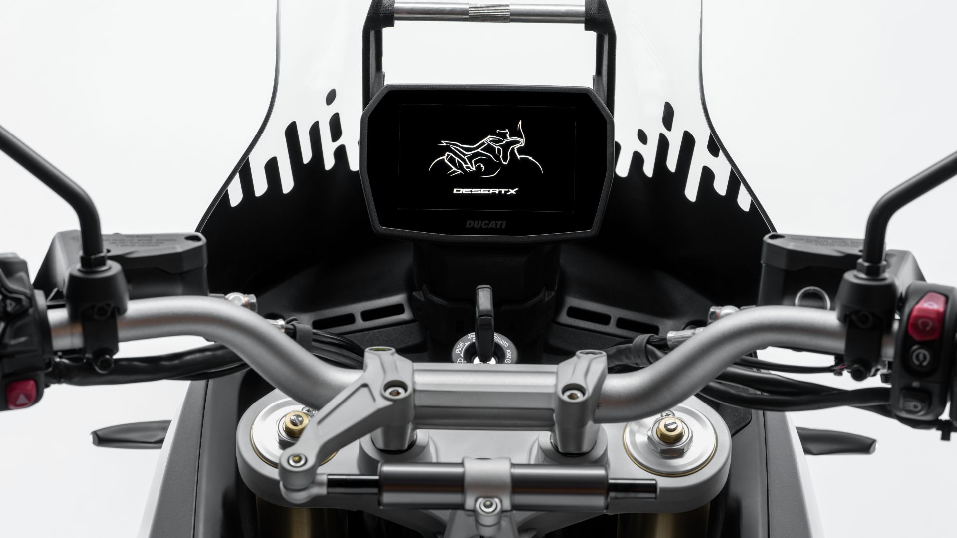 Anche sul fronte elettronica, nuova DesertX 2026 può contare su piattaforma inerziale a sei assi e tutti gli aiuti del caso: ABS Cornering, Ducati Traction Control (DTC), Ducati Wheelie Control (DWC) Engine Brake Control (EBC), ciascuno di essi regolabile su più livelli. Nello specifico ci sono quattro livelli di ABS, con i livelli 1-2 specifici per il fuoristrada – il primo è per i piloti veloci – e 3-4 dedicati all'uso su strada (l'ABS è disinseribile nelle ''mappe'' specifiche per il fuoristrada). Sono in totale sei i Riding Mode: Sport, Touring, Urban, Wet, oltre a Enduro e Rally. Nuovo è anche lo schermo TFT da 5'' gestibile attraverso il joystick a petalo sul blocchetto sinistro.