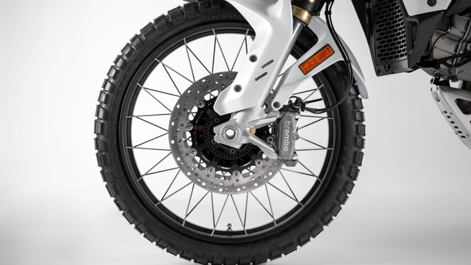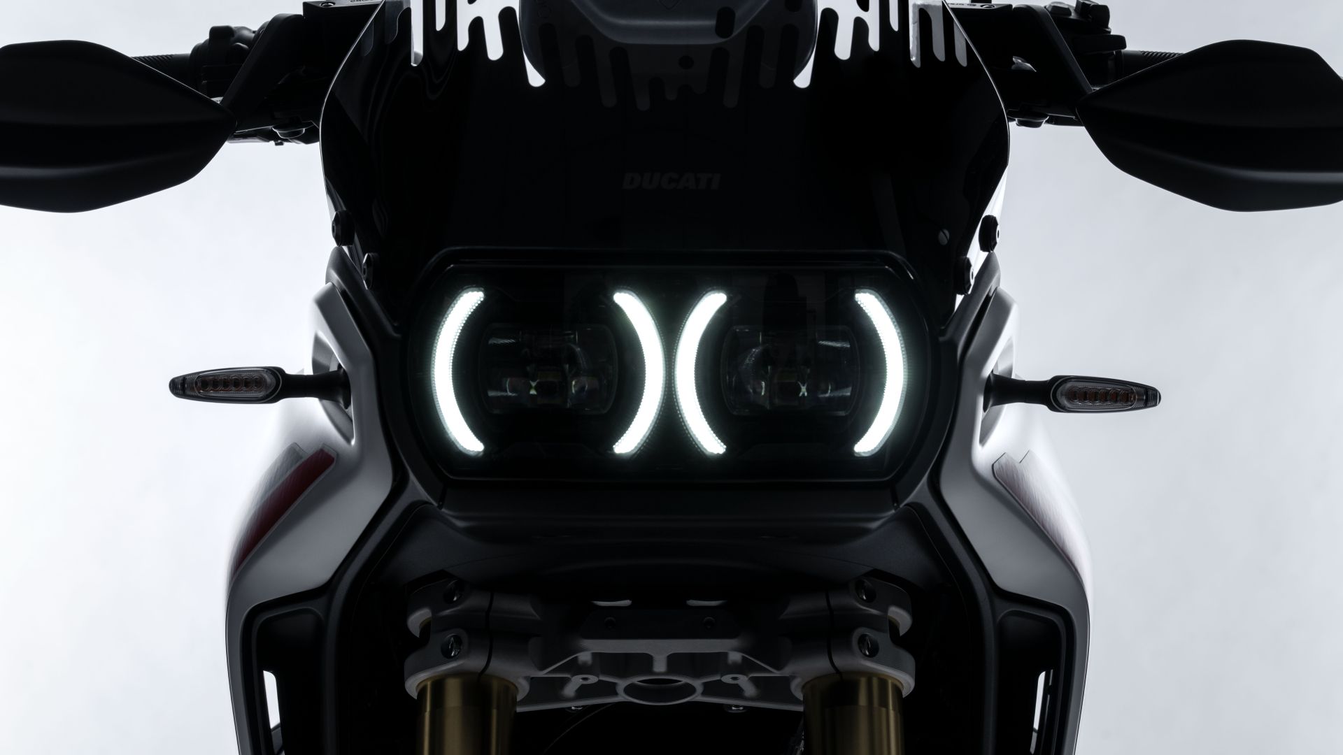 La nuova DesertX 2026, evoluzione della DesertX 937, è nata per essere più leggera, anche nel look, ma soprattutto più facile da guidare per i meno esperti e performante nelle mani dei professionisti. DesertX 2026 è sempre riconoscibile, anche per merito del suo ''sguardo'' con fari doppi tondi, ereditati dalla precedente versione, mentre il DRL diventa ora orizzontale. Tutta la zona anteriore è stata abbassata per dare al pilota una posizione di guida più dominante, mentre il parafango anteriore ora offre una maggior luce alla ruota anteriore, riducendo il rischio che il fango si annidi tra esso e la ruota (è possibile montare il parafango alto senza modifiche all'impianto frenante).