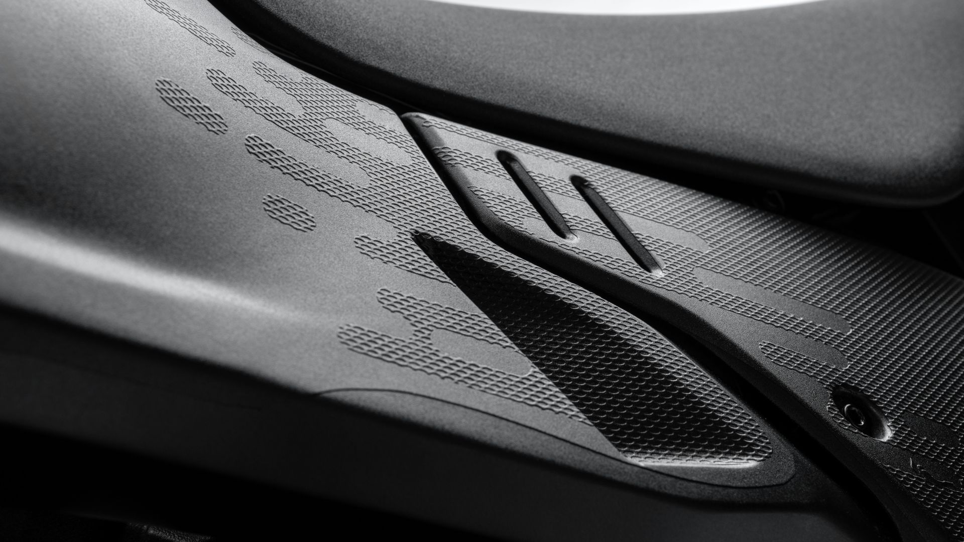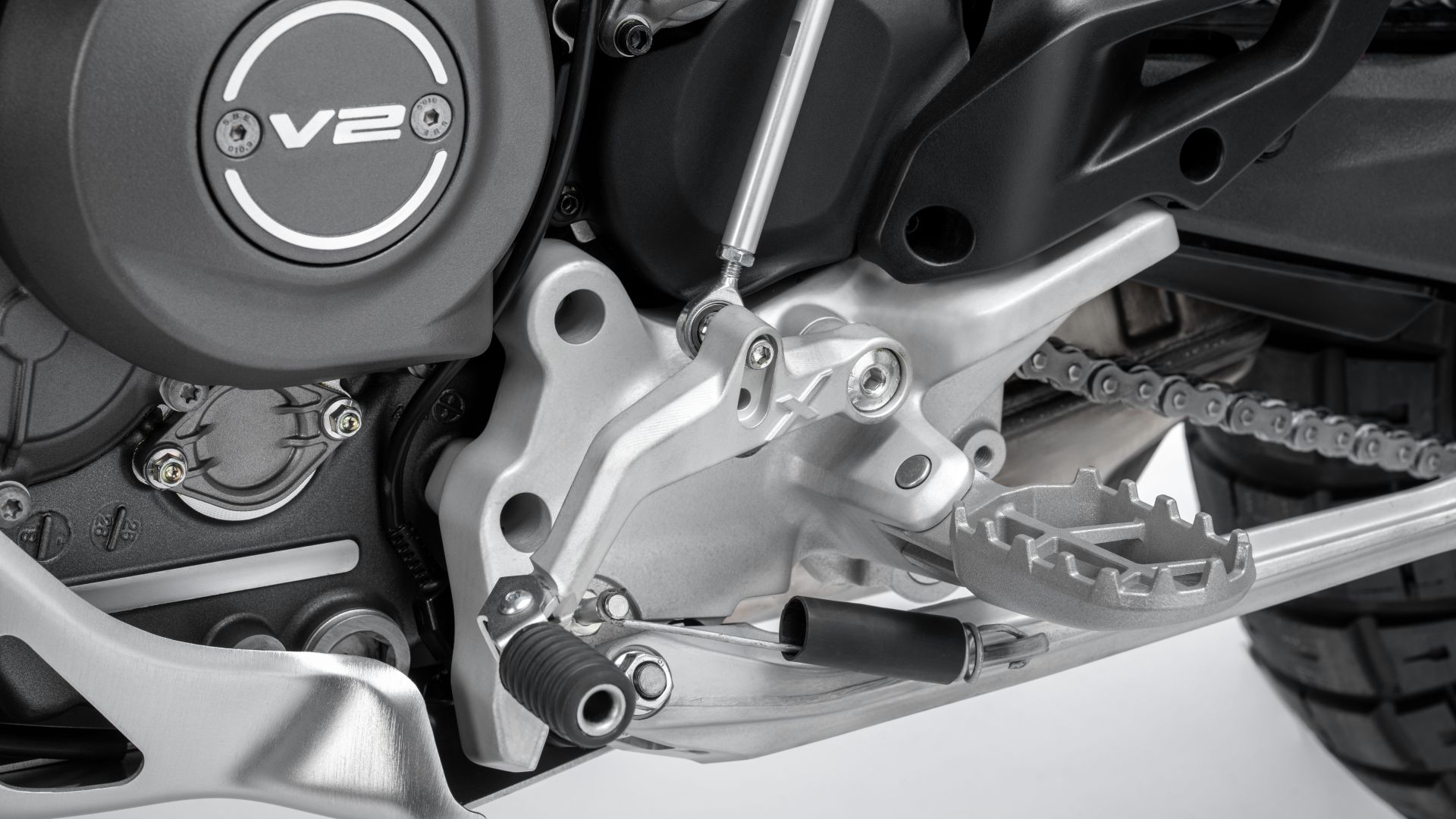 Grande lavoro anche sulle parti ''di contatto'', quelle che il pilota ha bisogno di sentire mentre guida, come i fianchetti, che presentano una superficie texturizzata per migliorare il grip nella zona delle ginocchia del pilota. Maggior risalto è stato dato a componenti come sospensioni, supporti e protezioni, riducendo al minimo le parti di carrozzeria. Motore, traliccio del reggisella e link dell’ammortizzatore sono lasciati il più possibile scoperti per conferire un look ''tecnico'' alla moto e facilitare l'intervento sulle parti meccaniche, mentre tante sono le aperture frontali e inferiori per il motore, così da facilitarne il raffreddamento ed evitare che lo sporco si annidi.