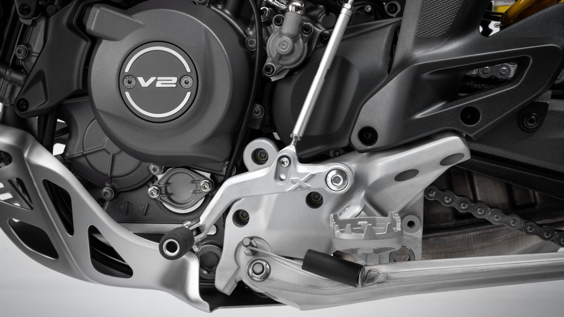 Il V2 da 890 cc della DesertX 2026, dotato di fasatura variabile delle valvole di aspirazione IVT, è già ''noto'' in quanto montato sulle altre moto della gamma V2. Sulla DesertX 2026 è capace di erogare 110 CV a 9.000 giri/min e 92 Nm di coppia a 7.000 giri/min (il 70% è disponibile già a 3.000 giri/min), quindi si allinea, quanto ai meri numeri, al precedente Testastretta a 11°.