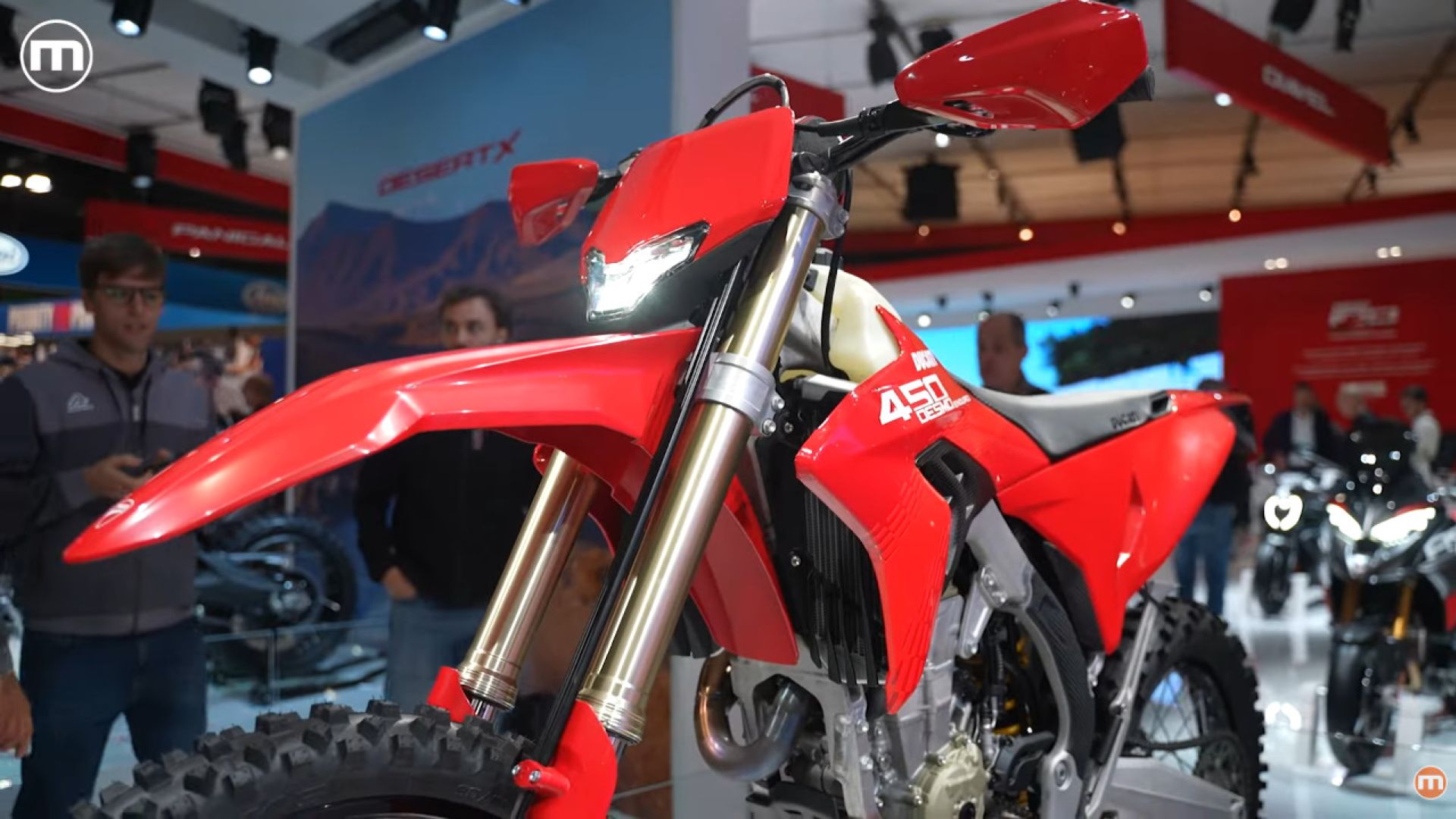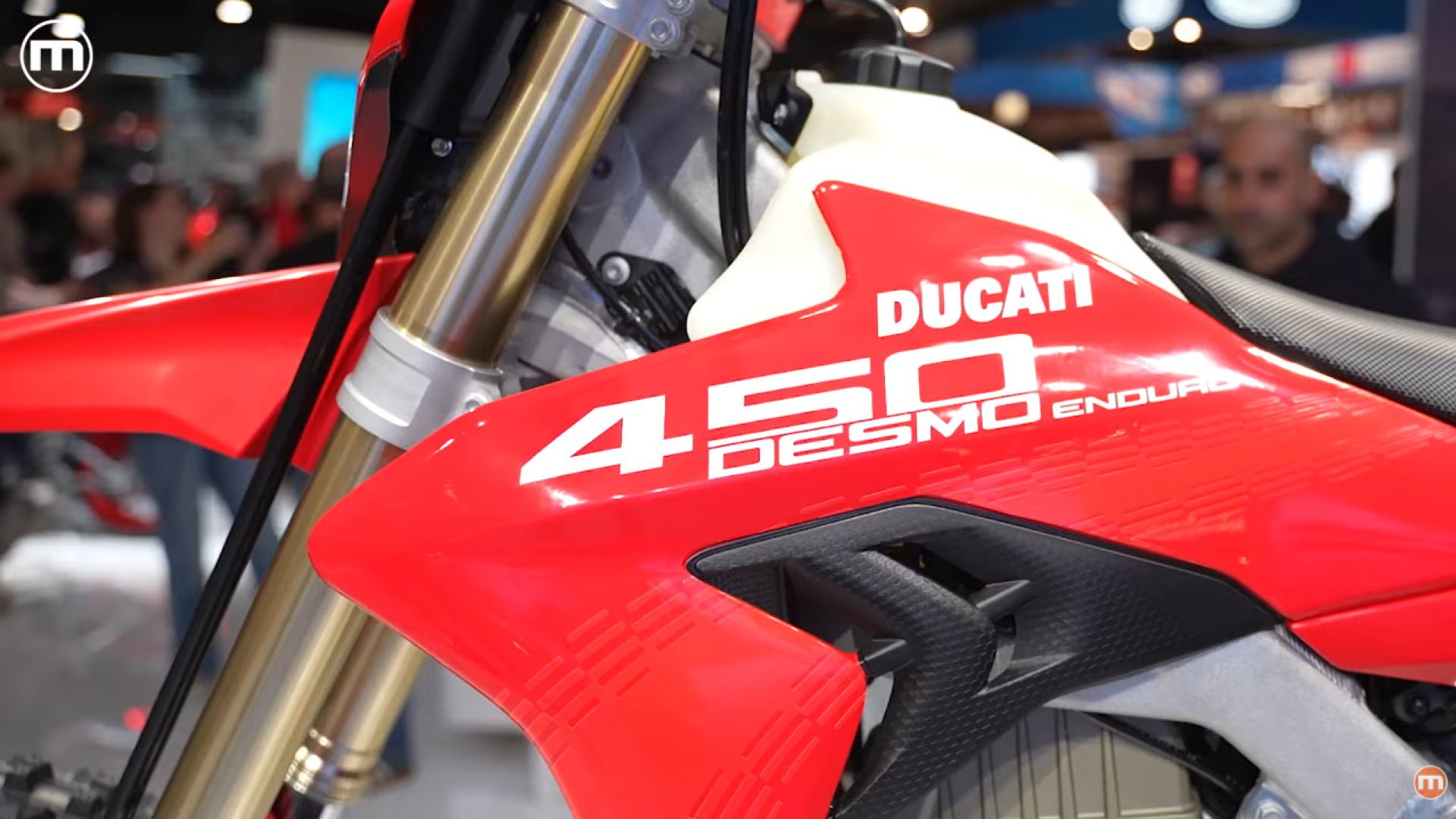 Ducati Desmo450 Enduro - La Casa di Borgo Panigale ha presentato a EICMA 2025 la sua enduro ''quattroemezzo'' in una versione semidefinitiva che ha definito una anticipazione. La 450 Enduro, quando arriverà (si parla di maggio 2026), sarà omologata per la strada, mentre alla fiera l'abbiamo vista in configurazione racing con scarico non omologato e senza frecce e specchietti.
