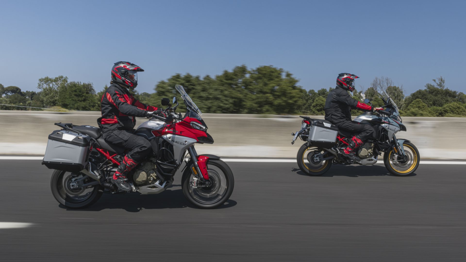 Sulla nuova Multistrada V4 Rally 2026 arrivano, dalla Multi V4 2025, disco maggiorato da 280 mm al posteriore, così come la tecnologia rear-to-front che, mentre si aziona il pedale del freno posteriore, chiama in causa anche l'impianto anteriore (a seconda della necessità). E ovviamente, come tutta la generazione delle Ducati 2025/2026, anche la nuova Multistrada V4 Rally guadagna il DVO, il Ducati Vehicle Observer che, simula la presenza di 70 sensori sulla moto. L'algoritmo è stato ulteriormente affinato e, nel caso del DWC, il Ducati Wheelie Control, permette con una logica quasi predittiva per impennamento e slittamento. Per non snaturare la voglia di avventura della Multistrada V4 Rally 2026, la modalità ABS 1 prevede, per l'impiego in fuoristrada, una ripartizione della frenata sul posteriore anche in caso di utilizzo della sola leva al manubrio. Se si usa il solo pedale del posteriore o comunque l'intensità supera il livello predeterminato, l'ABS al posteriore si disattiva per permettere il bloccaggio della ruota. La Multi V4 Rally 2026 può contare anche su mappa Enduro – potenza di 114 CV ed erogazione più... diretta – parabrezza maggiorato – + 20 mm in altezza e + 40 mm in larghezza – e Cornering Lights DCL migliorate. Non poteva mancare il sistema radar con Adaptive Cruise Control, Blind Spot Detection e Forward Collision Warning. Di serie il cavalletto centrale, rivisto nella forma per facilitare il sollevamento della moto, così come le manopole riscaldabili.
