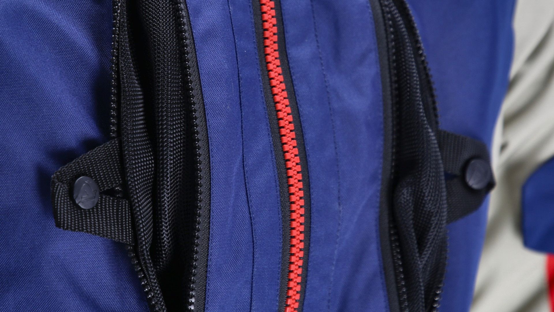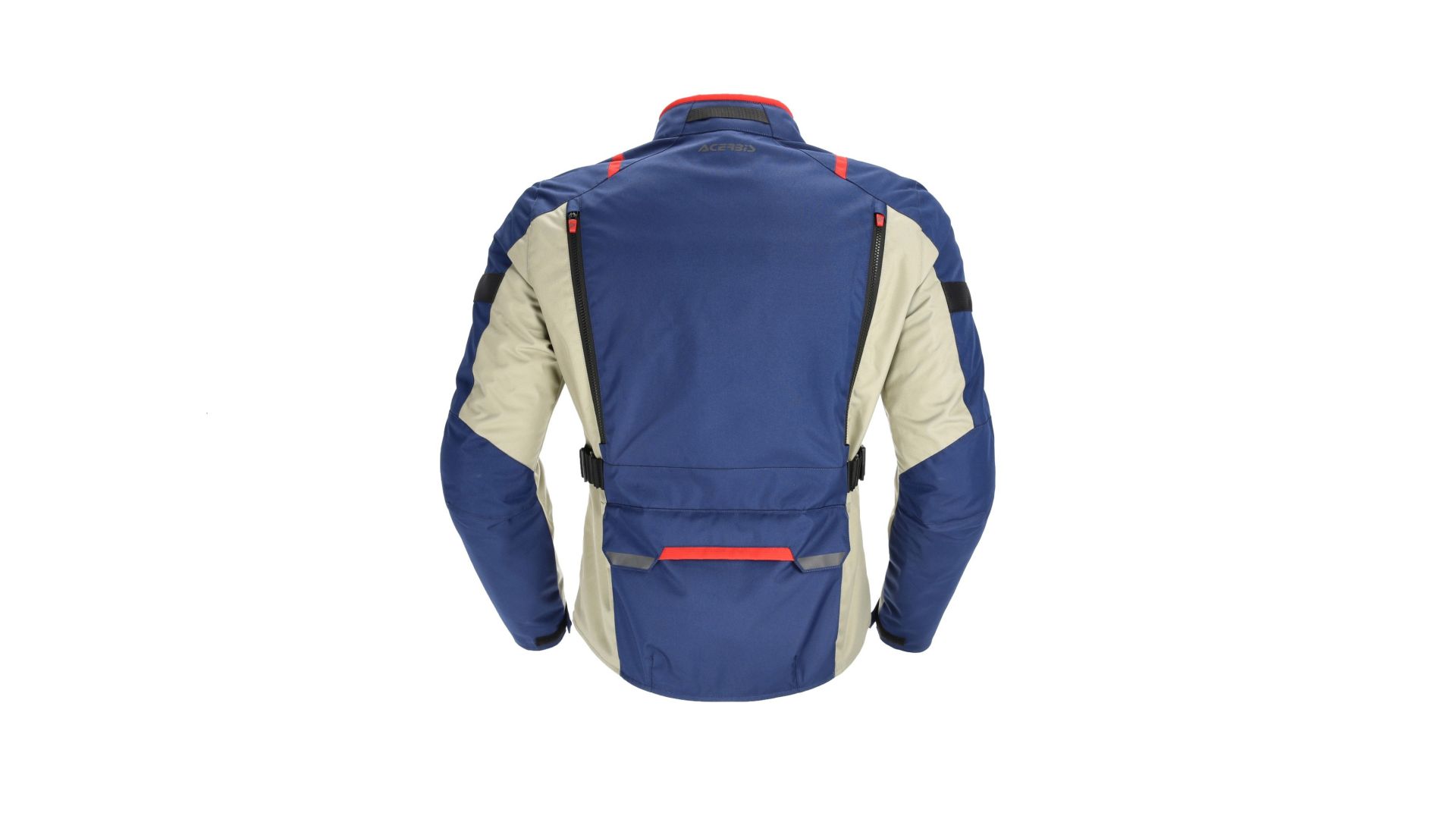 Dal punto di vista costruttivo, Acerbis ha scelto materiali robusti ma pensati per un uso prolungato, tessuto esterno in poliestere 450D idrorepellente, inserti rinforzati in 600D RIPSTOP, fodera interna in rete e collo in micropile, morbido e confortevole anche sulle lunghe distanze.