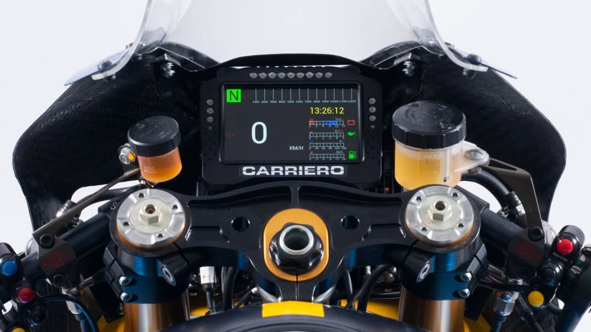 Anche il motore che come accennato in precedenza rimane in bella vista, è stato aggiornato, con la cilindrata portata a 866 cc. Il 4 cilindri in linea è stato rivisto profondamente con una logica di preparazione racing che ha comportato, ad esempio, la creazione di pistoni personalizzati. Inoltre, è stato aumentato il rapporto di compressione. L'unità adotta poi carburatori con filtri in spugna in stile prototipo, mentre la mappatura è gestita attraverso un kit Dynojet Stage 1. Il lavoro di Carriero Corse si è concentrato anche sul cambio. Via quello a 5 rapporti in favore di una trasmissione a 6 marce di origine Honda CBX750 che permette di sfruttare al meglio la maggiore coppia del motore. L’azionamento della frizione è adesso idraulico. Il motore è poi collegato a un sistema di scarico in titanio 4 in 1 con il terminale in acciaio inox collocato sotto al motore. Tra gli altri elementi ''moderni'', leve Brembo, manopole e acceleratore Domino, una nuova batteria agli ioni di litio e l'accensione keyless.