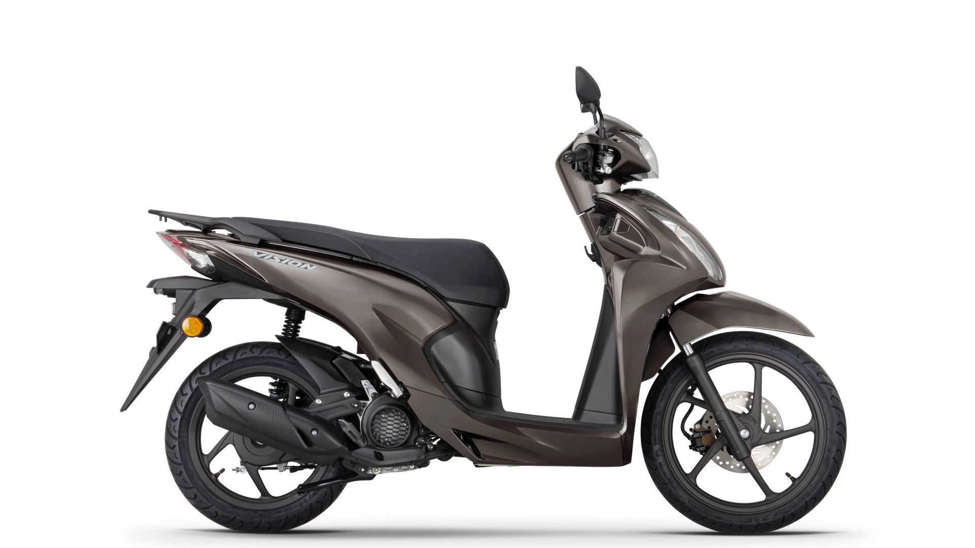 Honda Vision 110 2026 si può richiedere nelle colorazioni ''Mat Mine Brown Metallic'', ''Pearl Snowflake White'', ''Candy Luster Red'' e Mat Galaxy Black Metallic''.