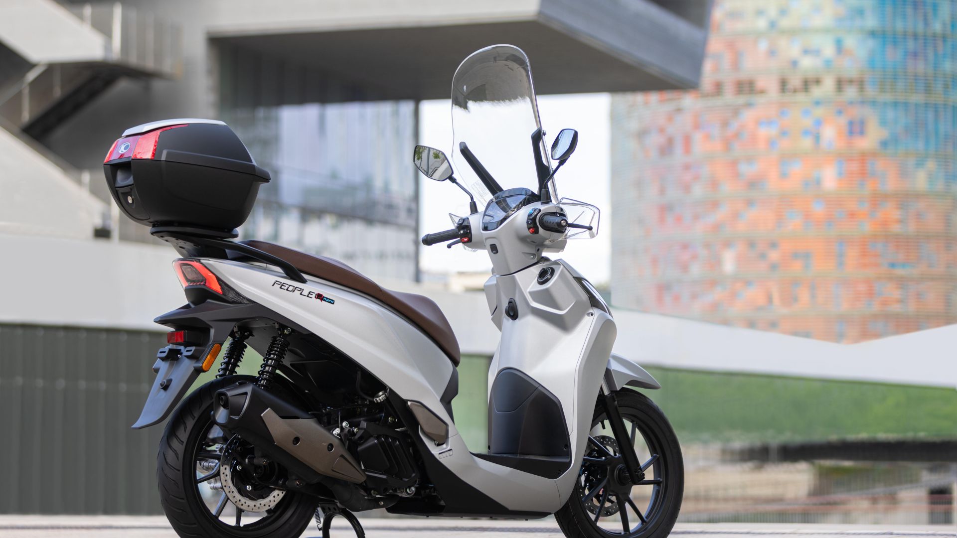 La forcella telescopica lavora al fianco di doppi ammortizzatori regolabili nel precarico al posteriore, il peso è di 134 kg, la sella a 800 mm e l’interasse di 1.395 mm, numeri che lascerebbero intendere un carattere dinamico e maneggevole per il People R Hybrid.
