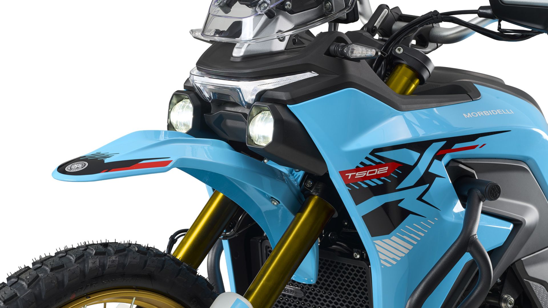 Morbidelli T502XR 2026 - A stretto giro dal lancio dell'interessante globetrotter A2 T502X, la Casa fu pesarese presenta la versione adventure realizzata sulla medesima base tecnica. Ritroviamo quindi il motore, con potenza massima adatta alla guida con patente A2, il telaio e, in larga parte, il rico allestimento. Non mancano però interessanti novità che rendono la versione XR più adatta all'offroad e più tecnologica. A detta di Morbidelli, sarà in vendita nel corso del primo semestre 2026. Sarà proposta in due colorazioni, su base celeste e su base bianco.
