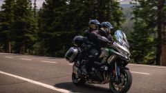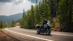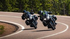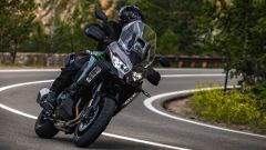 COME CAMBIA Il look non subisce modifiche ma, come da pronostico, il motore 4 cilindri in linea passa da 1.043 cc a 1.099 cc grazie a una corsa più lunga di 3 mm: la potenza massima sale così da 120 CV a 135 CV a 9.000 giri/min e allo stesso modo anche la coppia cresce, da 102 a 112 Nm a 7.600 giri/min (100 giri più alto dell'attuale Versys 1000). Tra le novità anche i condotti di aspirazione centrali, ora più lunghi di 45 mm rispetto a quelli esterni, che migliorano così la coppia tra i 4.000 e i 7.000 giri/min. A subire modifiche anche il cambio elettronico Kawasaki Quick Shifter (KQS) che ora funziona dai 1.500 giri/min, così come la rapportatura aggiornata, con la finale che si accorcia (+ 1 dente alla corona). Varie migliorie sono da segnalare anche a livello della centralina, con la modifica dell’apertura della valvola a farfalla, i profili delle camme con un'alzata delle valvole inferiore, una massa volanica più pesante e un contralbero di bilanciamento secondario che riduce le vibrazioni in eccesso, mentre è stato aggiunto un radiatore dell'olio per migliorare il raffreddamento.