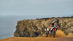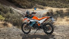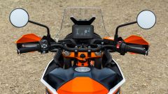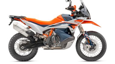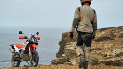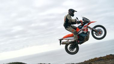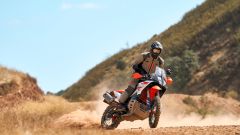 MOTORE E CICLISTICA Dal punto di vista tecnico nessuna rivoluzione, d’altronde l’austriaca era già al vertice della sua categoria. Confermati il telaio a traliccio in acciaio, il forcellone in alluminio e le sospensioni WP, con forcella XPLOR da 48 mm e dal mono XPLOR PDS – ovvero senza leveraggio – entrambe completamente regolabili e con escursione di 240 mm davanti e dietro. Il motore bicilindrico parallelo LC8c da 889 cc, ora omologato Euro 5+, conferma i valori di potenza e coppia, ovvero 105 CV e 100 Nm. La moto ha un peso di 200 kg senza benzina (serbatoio da 20 litri), la sella è a 880 mm da terra.