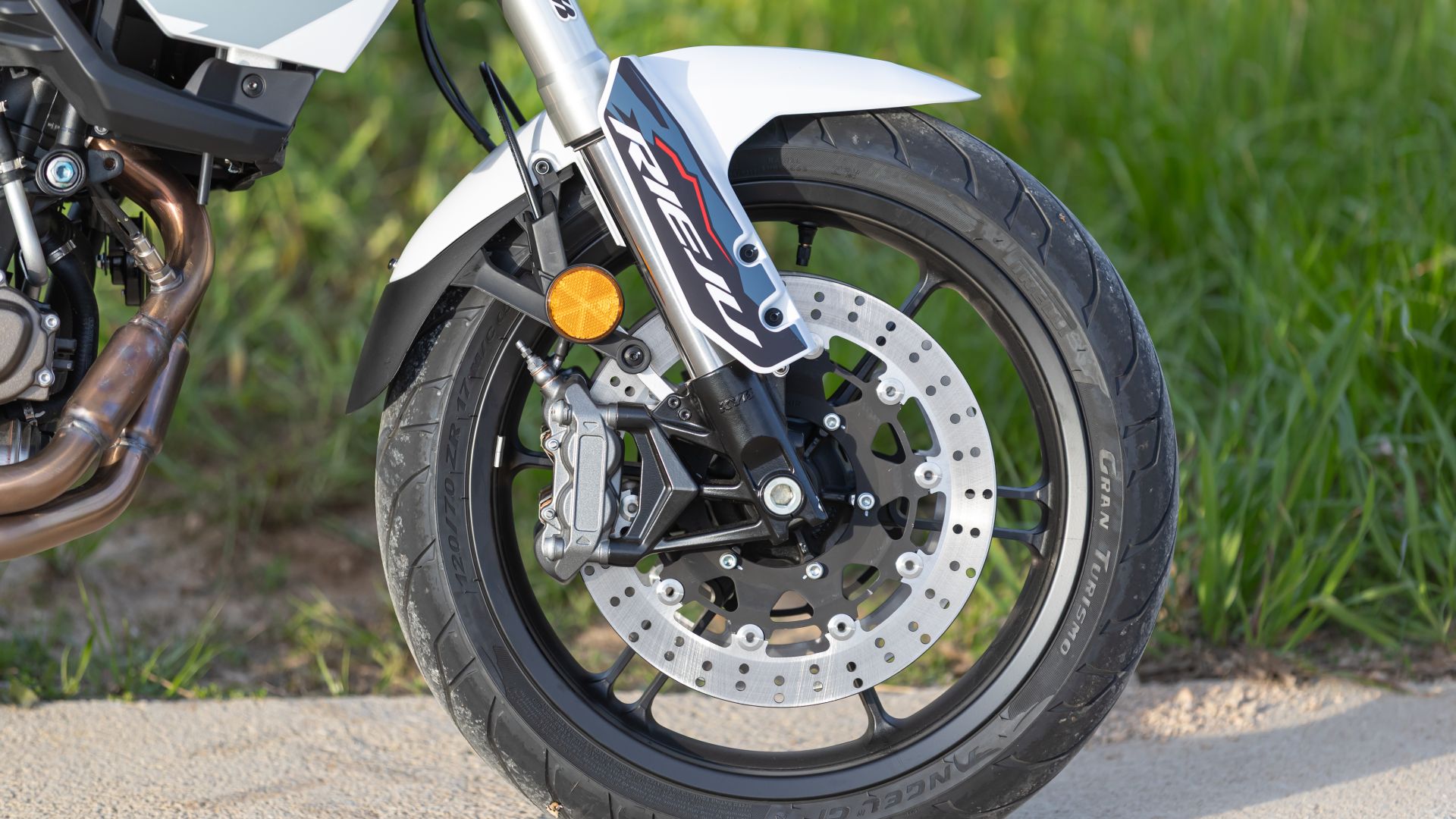 Rieju Xplora 557 è una moto fondamentalmente analogica ma è dotata di fari full LED, comandi retroilluminati, TFT a colori da 7'' con connettività Mirror Link e sistema di navigazione, presa USB-C. L'ABS Bosch a 2 canali è disattivabile al posteriore.