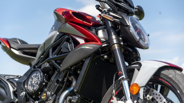 La stragrande maggioranza dei dati tecnici della nuova MV Agusta Brutale 950 sono ancora segreti. Si sa che sarà equipaggiata col 3 cilindri da 931 cc già utilizzato dalla Enduro Veloce: sulla maxi enduro 124 CV a 10.000 giri e 102 Nm a 7.000 giri, con l'85% della coppia disponibile già da 3.000 giri/min. Dopo che il primo ''muletto'' è uscito allo scoperto possiamo però andare un po' oltre e immaginare come sarà la prossima Brutale 950. La nuova naked di MV Agusta mantiene sostanzialmente intatto il look da Brutale, tra faro oblungo inclinato all'indietro, forcellone monobraccio e codino tronco. Il serbatoio ''perde'' le alette, ma sembra più prominente che sull'attuale generazione. Ergonomicamente la nuova Brutale 950 dà l'idea di avere una sella più bassa, più ampia longitudinalmente e anche più imbottita – guardate, sotto, la Brutale 800 RR SCS che ho guidato anni fa – a tutto vantaggio di abitabilità e comfort, anche per il passeggero.