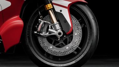 Più nel dettaglio, la forcella utilizza una cartuccia pressurizzata che riduce la cavitazione, garantendo un sostegno costante in frenata e in ingresso curva. Dietro, invece, c'è un ammortizzatore Öhlins TTX36 GP LW che adotta una speciale molla in acciaio alleggerita e valvole derivate dalla MotoGP.