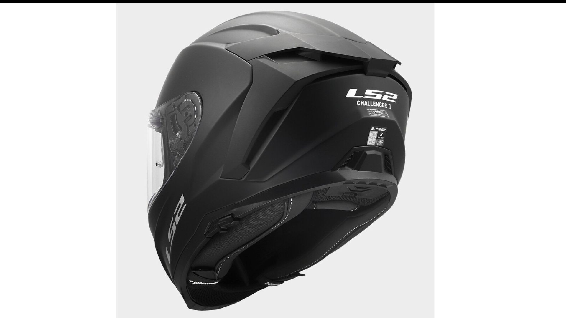 Challenger 2 è il modello top, tra quelli appena lanciati da LS2. Il suo prezzo parte da 329 euro. Ha calotta in HFPC (composito termoplastico rinforzato con fibre) e un peso indicativo di 1.500 grammi. È disponibile in otto taglie (dalla XXS alla XXXL) con tre diverse misure di calotta. Ha chiusura con fibbia micrometrica e sistema di sgancio d'emergenza, due prese d'aria frontali e due estrattori posteriori, deflettore del respiro, interni rimovibili e lavabili, fodera Coolmax (un tessuto tecnico usato per migliorare traspirabilità e gestione dell’umidità), deflettore sottogola magnetico, predisposizione per interfono, visiera con Pinlock 120, sgancio rapido e pulsante di sblocco, visierino parasole.