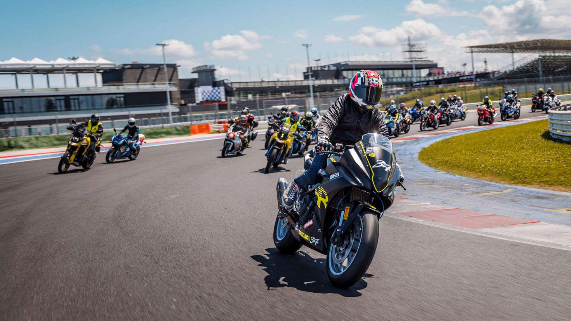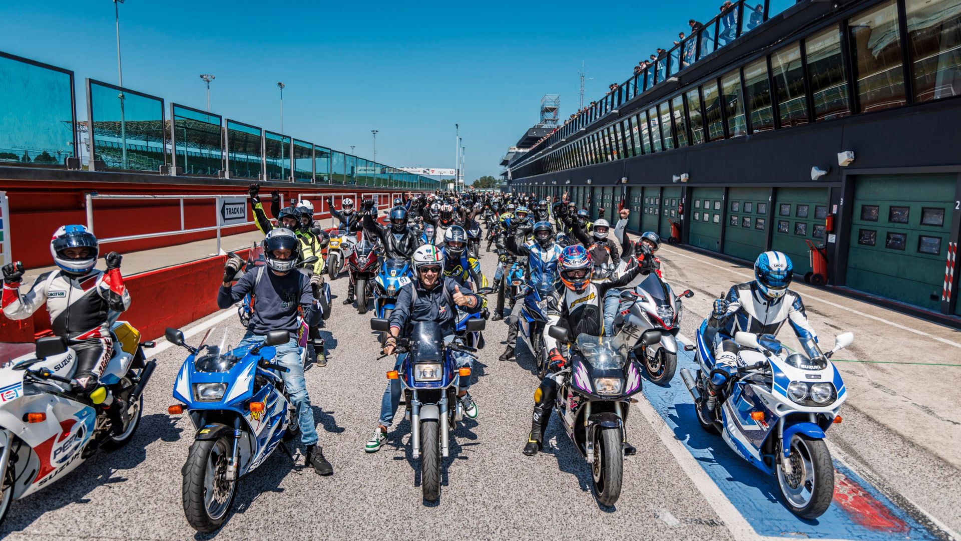 Il momento più scenografico della giornata? La parata in pista delle 13:40, aperta a tutti i clienti Suzuki con moto o scooter di qualsiasi cilindrata, anno o categoria.