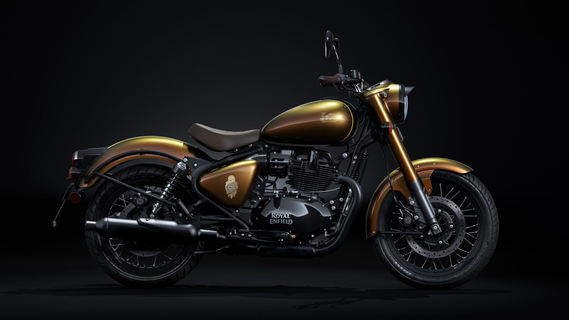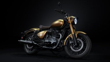 La Classic 650 125 Years Special Edition è un omaggio realizzato per celebrare questo importantissimo traguardo della Casa indiana. A caratterizzare questa speciale versione ci pensano la verniciaturah y p e r s h i f t con finitura... camaleontica che muta dal rosso all'oro, dal chiaro allo scuro in funzione della prospettiva dalla quale si osserva la moto. Allo stesso modo lo stemma 125 Years, dorato e con rilievo sul rosso, caratterizza questa speciale versione della Classic, insieme con una sella marrone ricamata. Restano invariate le caratteristiche tecniche della Classic 650 – qui la prova – dal telaio a trave tubolare in acciaio, ai cerchi a raggi da 19'' e 18'', così come il motore bicilindrico parallelo da 648 cc da 48 CV e 52 Nm (il peso è 243 kg in ordine di marcia). Royal Enfield per il momento non ha rilasciato informazioni in merito alla data di commercializzazione e al prezzo della Classic 650 125 Years Special Edition (la Classic 650 è in vendita con prezzi dai 6.800 euro ai 7.100 euro).