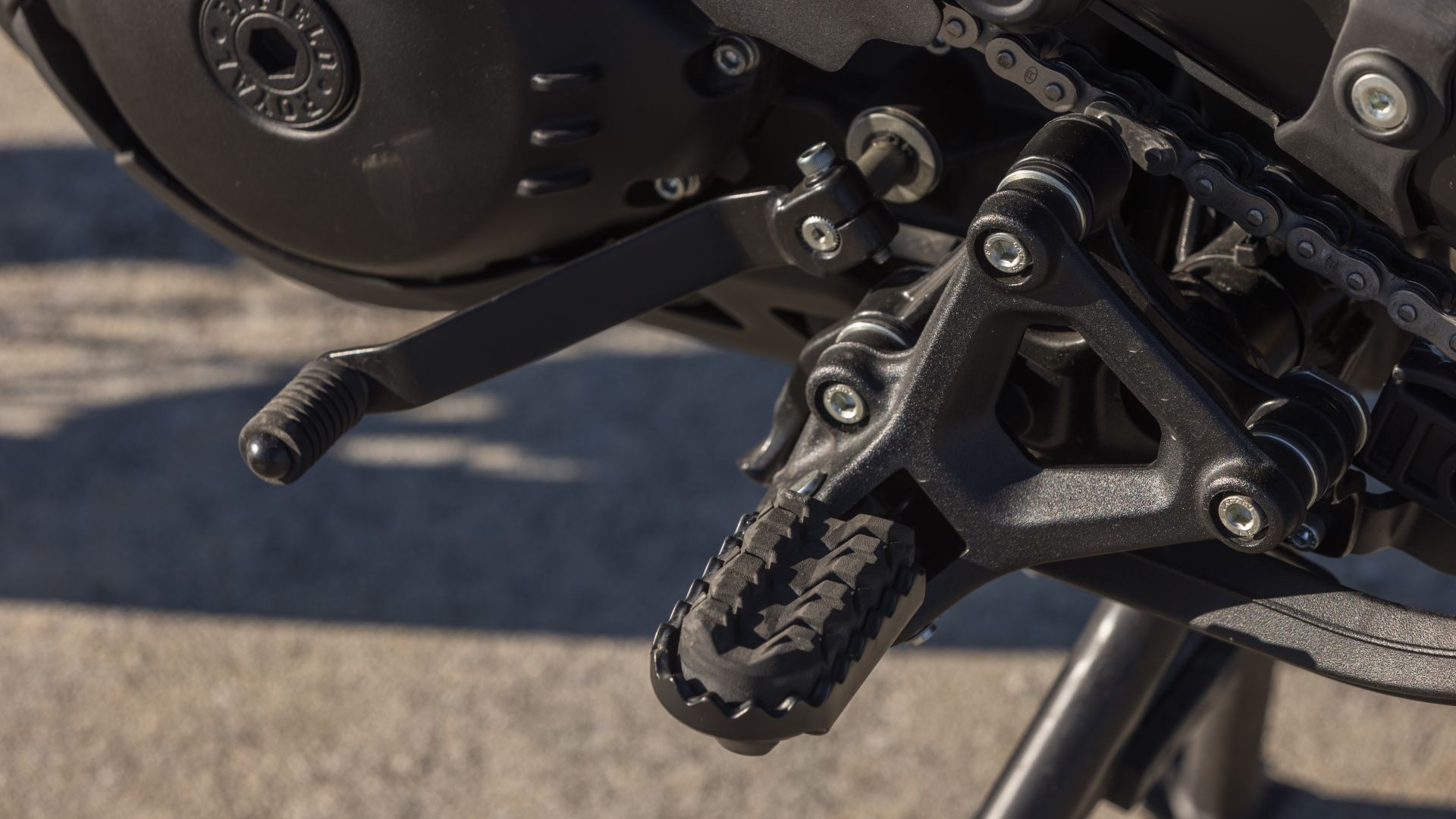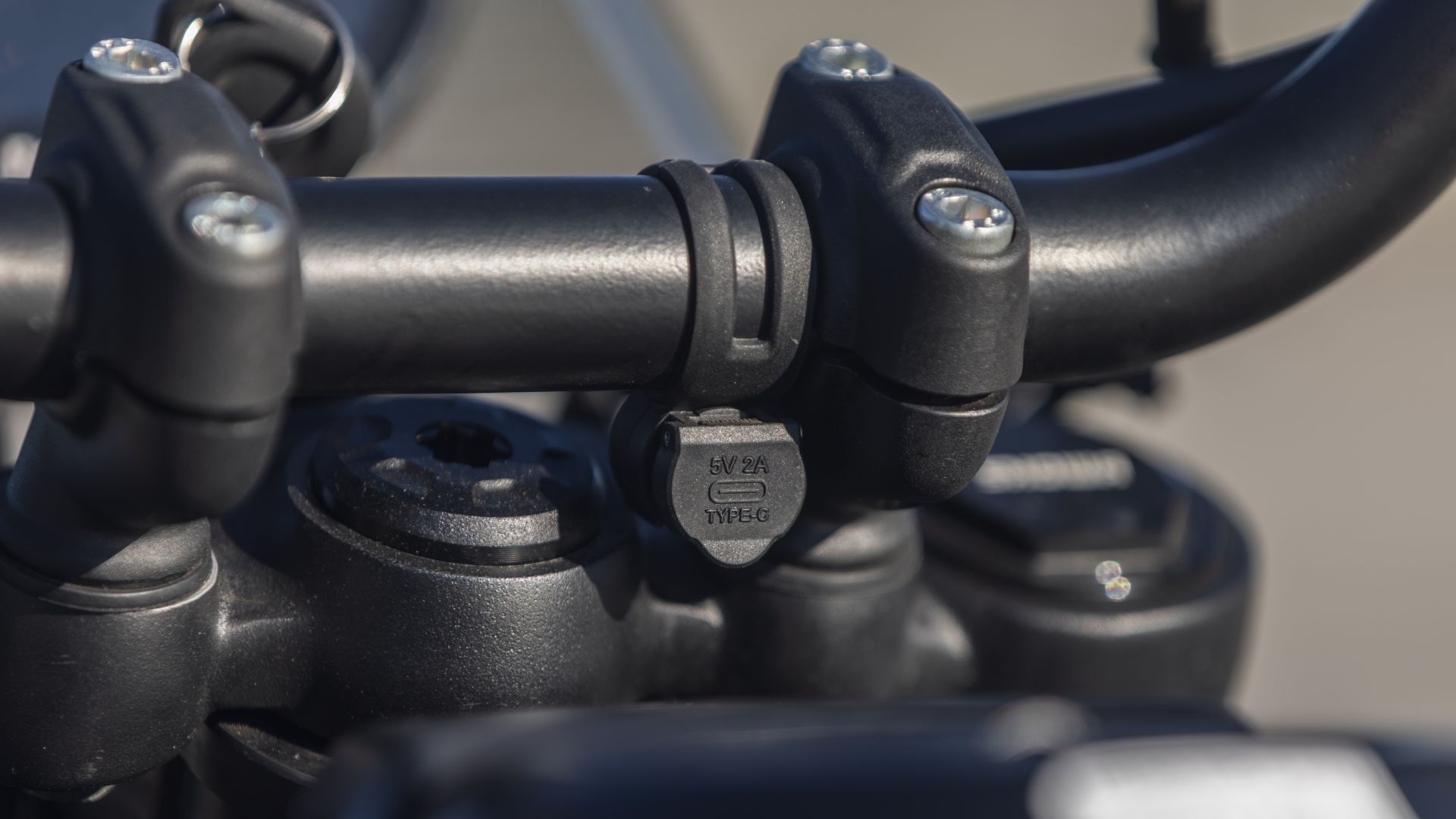 La dotazione di serie è completata dalla fanaleria full LED, dalla presa USB, dall'ABS disattivabile dalla ruota posteriore, da due mappature di erogazione e da un bel display TFT circolare con connettività che, quando connesso allo smartphone, può mostrare la navigazione cartografica di Google Maps. Le pedane sono dentate con gommino rimovibile, mentre manca la regolazione della distanza delle leve di freno e frizione.