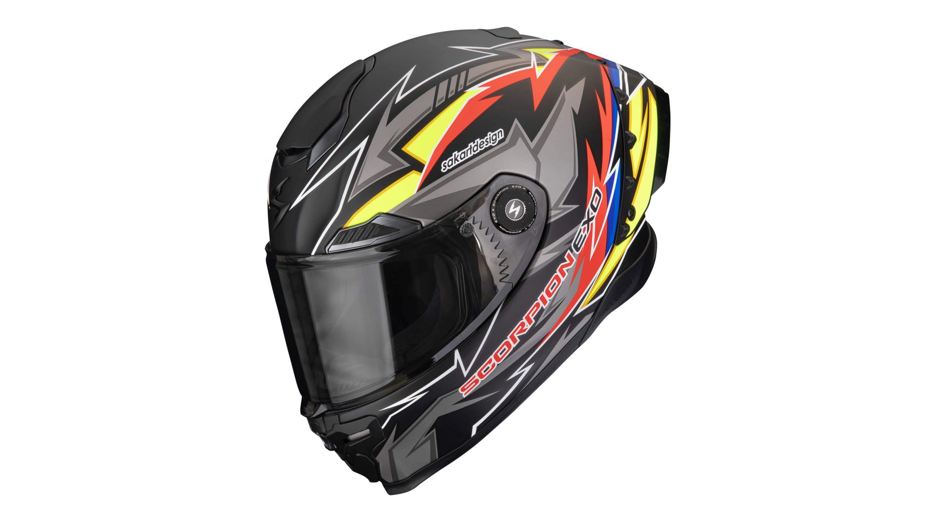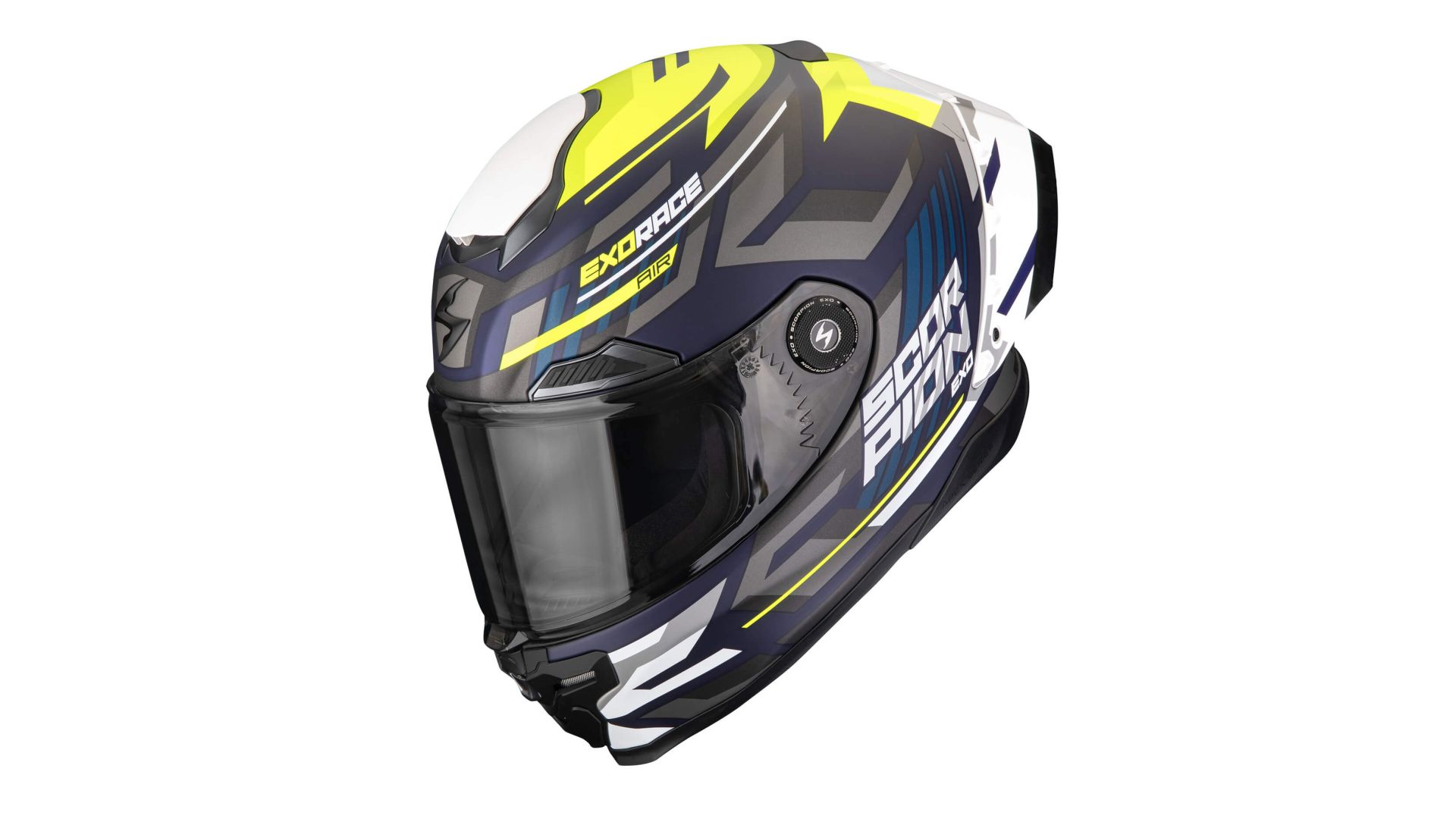 Exo Race Air nasce dalle competizioni ed è certificato FIM Racing #2. Tra le peculiarità di Exo Race Air la calotta in Carbon Matrix Fiber e lo spoiler posteriore regolabile per ottimizzare aerodinamica, controllo e silenziosità a seconda dell'utilizzo. La visiera ottica Classe 1 di Exo Race Air promette una visione priva di distorsioni, nitida e profonda anche alle alte velocità, con la curvatura variabile che riduce i riflessi, mentre la lente Pinlock 100% MaxVision 120 XLT assicura una visibilità perfetta a prescindere dalle condizioni ambientali. Nuovo il meccanismo di apertura/chiusura “One Touch Ratchet System”, esclusivo Scorpion Exo, che permette di bloccare o sbloccare la visiera con un solo gesto.