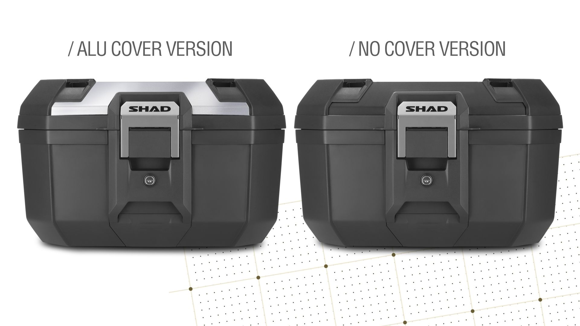 Due sono le versioni disponibili: la prima con coperchio in alluminio anodizzato che offre un look più tecnico, oppure senza. Inoltre, Shad propone una serie di accessori pensati per arricchire l'esperienza d'uso come una spalliera a doppia intensità per il passeggero, una borsa interna e kit di luce freno, coperchio in simil carbonio e un coperchio non verniciato personalizzabile.