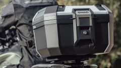 Inoltre, TR46 di Shad adotta un sistema di chiusura integrato con una serratura in acciaio inossidabile con sistema brevettato e maniglia integrata. Sarà possibile aprire, chiudere, montare e smontare il bauletto con una sola mano e in pochi secondi. Nessun problema in caso di pioggia dato che dispone di una struttura impermeabile certificata IPX5. Inoltre, sono presenti ganci superiori per fissare bagagli extra, fino a un carico complessivo di 6 kg.