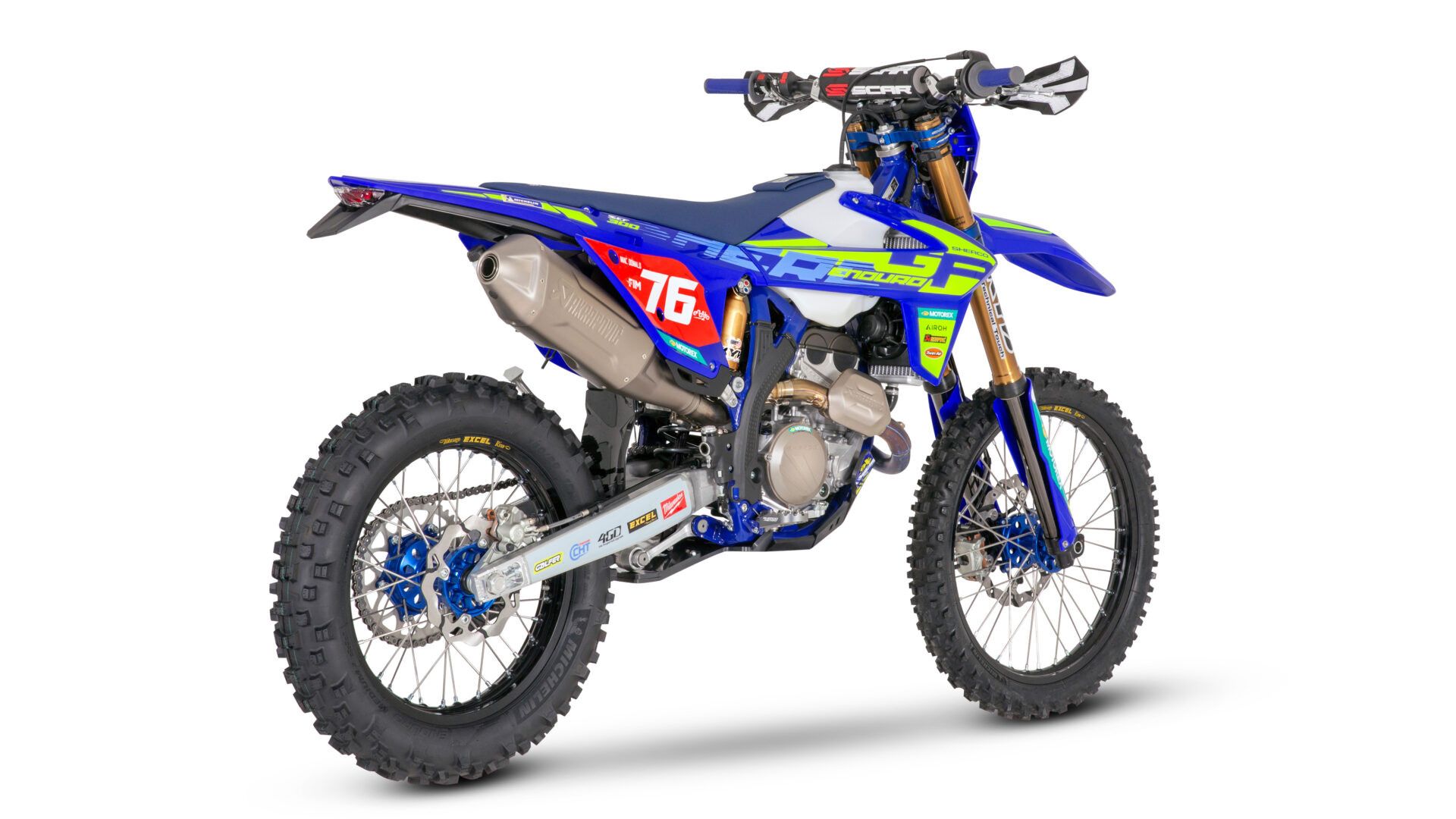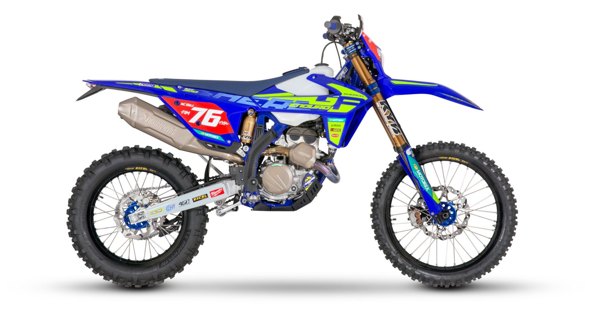 Ci sono poi Mozzi 4GD CNC blu anteriori e posteriori, Piastre forcella Factory CNC, Disco anteriore Galfer da 270 mm con staffa di spostamento, Disco posteriore Galfer, Protezione motore Xtrem nera, Pedane Factory CNC, Manubrio Scar, Kit grafico EnduroGP con numeri pilota, Adesivo telaio serie limitata numerata, Sella specifica con tasca e Paramani Polisport specifici. Inoltre, piccola chicca, ogni moto è accompagnata da una maglia replica firmata da Steve Holcombe o Hamish Macdonald ed è numerata.