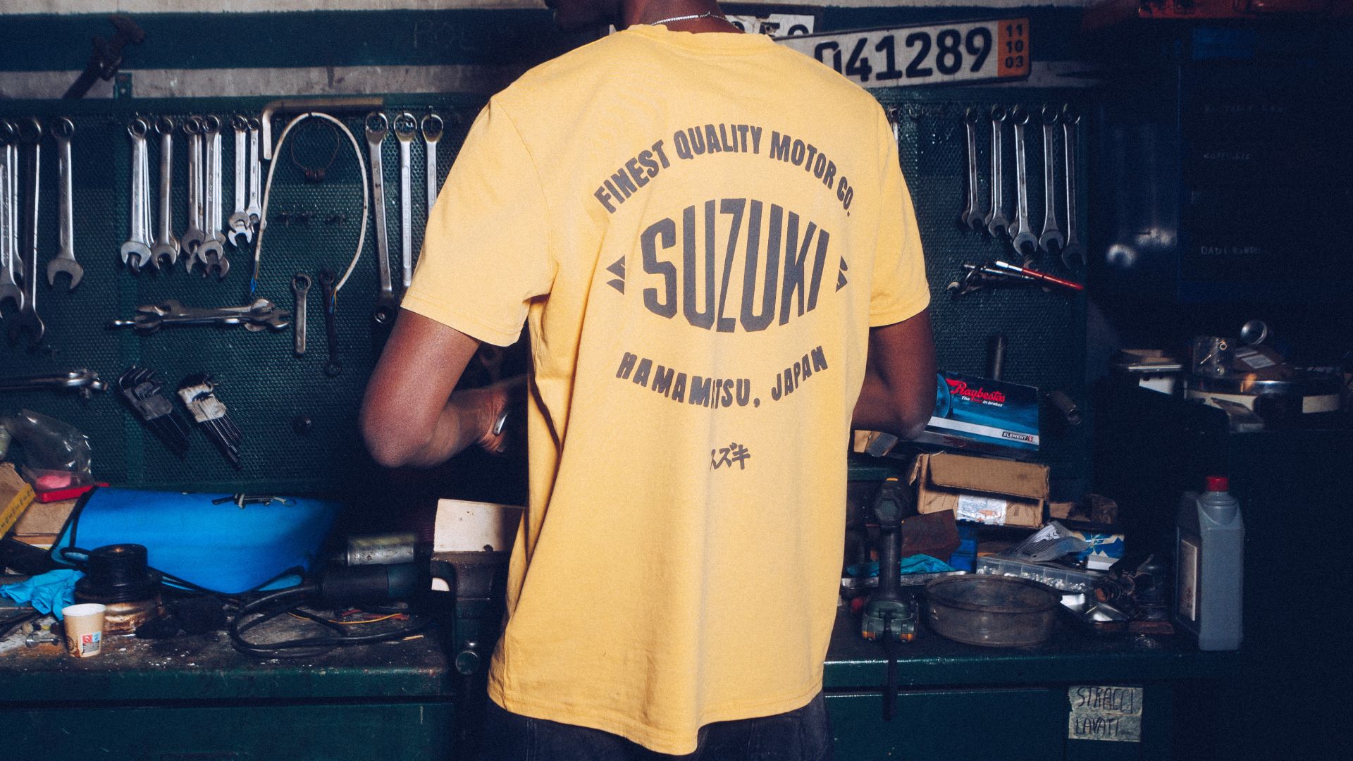 La ricerca continua della perfezione è un concetto affascinante della cultura giapponese (che da ex karateka non posso che apprezzare a mia volta), questo è sinonimo di ricerca costante di cura del dettaglio e qualità nella realizzazione di ogni cosa. Valori che Suzuki ha provato a trasferire anche nella sua linea di abbigliamento, realizzata in cotone 100% organico, con stampa grafica eseguita artigianalmente mediante stampa serigrafica, al fine di garantire originalità, resa cromatica e durabilità nel tempo. La collezione è composta da: