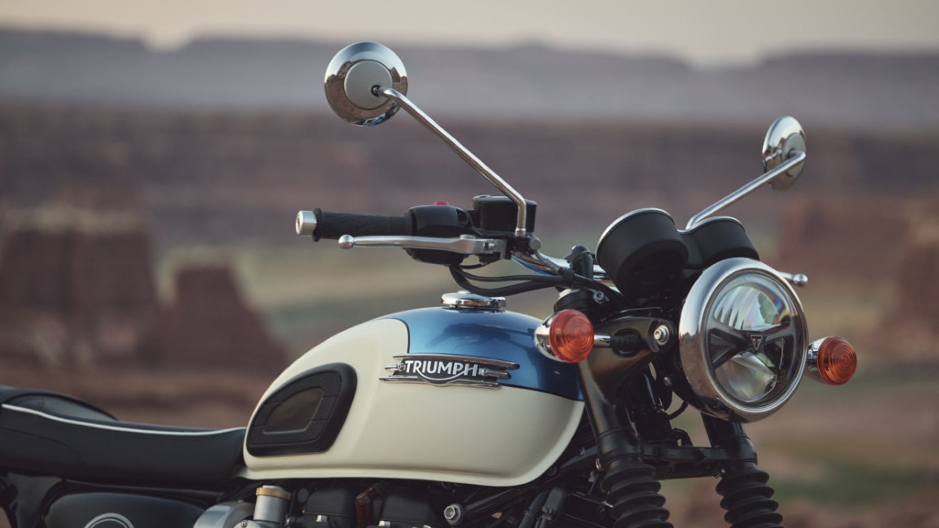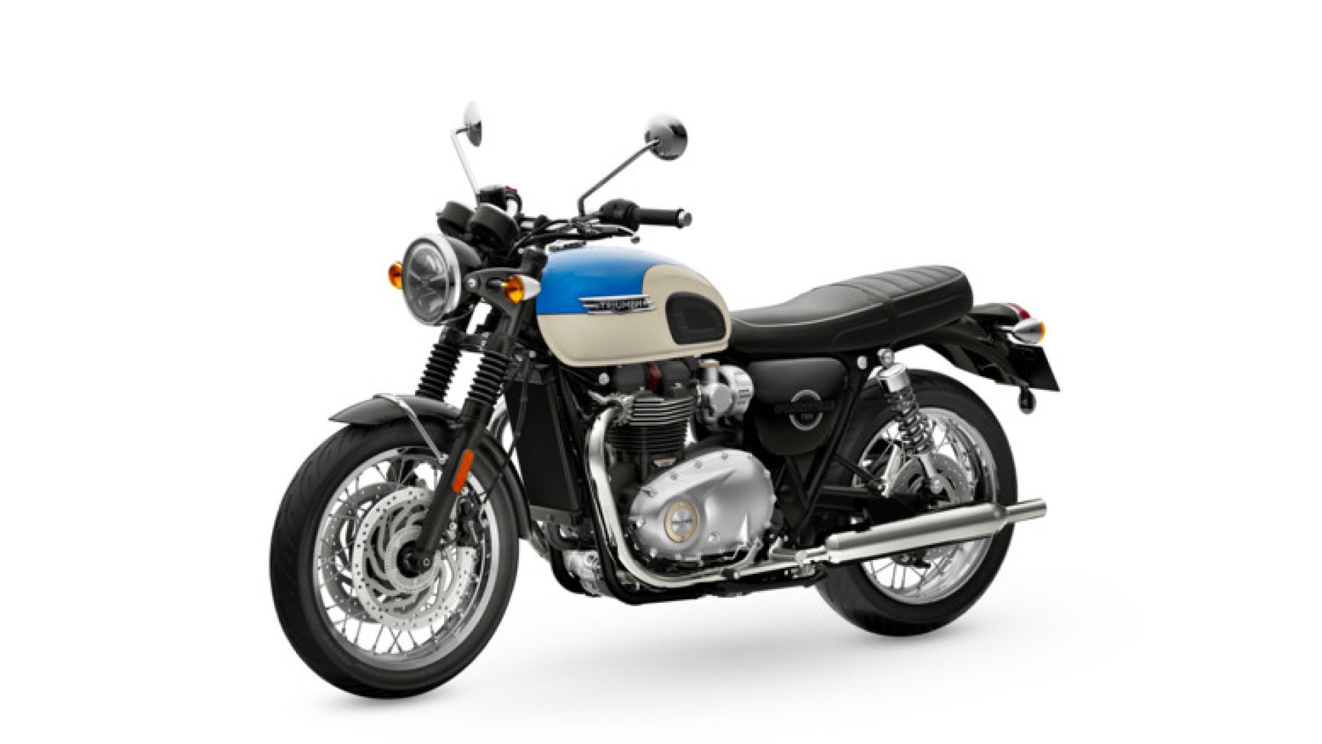 Riguardo il look, il logo Bonneville, in argento o oro, è incorniciato da una nuova grafica circolare sui pannelli laterali. Ci sono due nuove colorazioni premium disponibili per T120 (bianco/azzurro, roso/argento) e una nuova livrea monocromatica per T120 Black. E c'è un nuovo e potente faro anteriore full LED con luci diurne DRL.