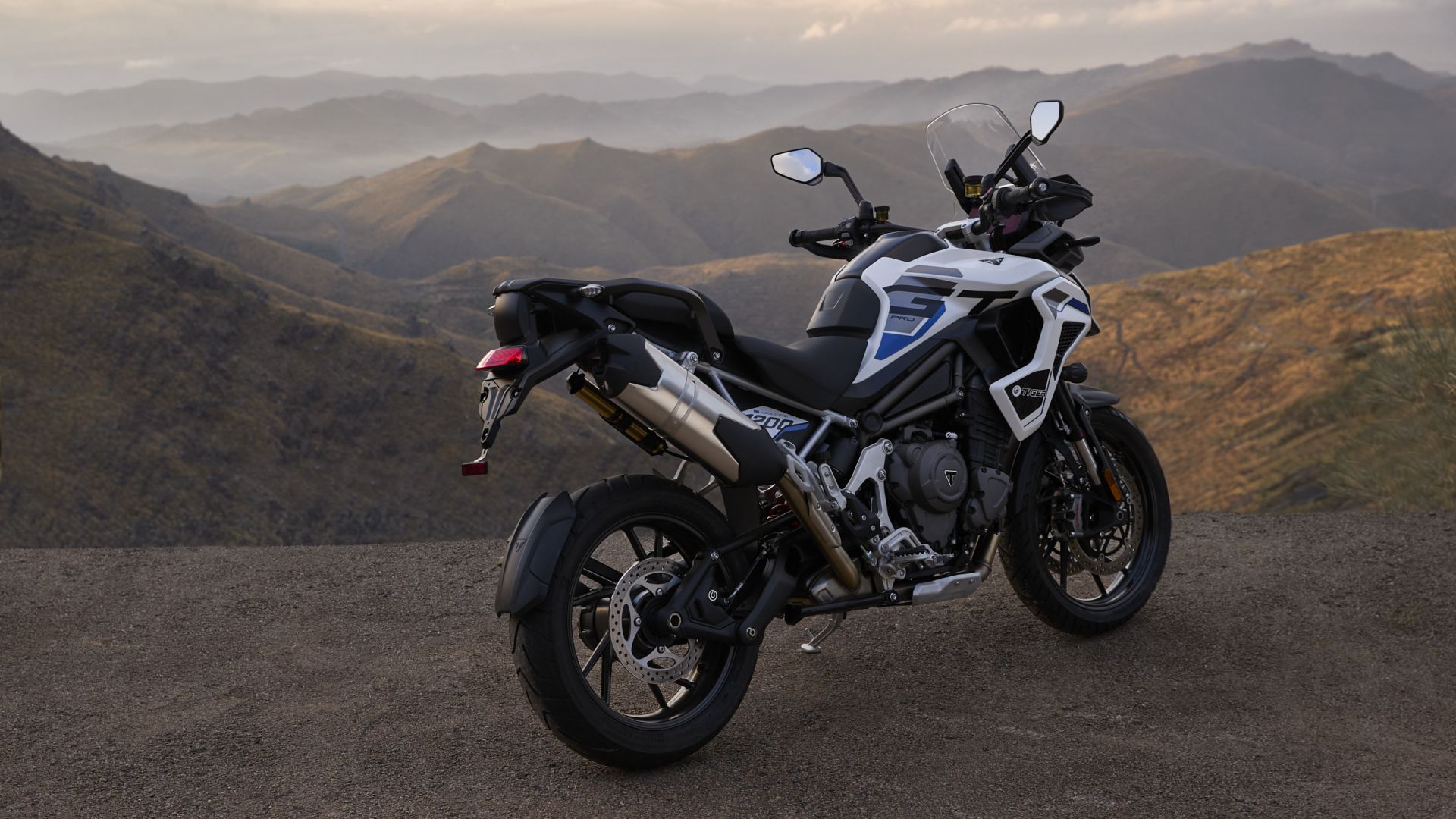 La Tiger 900 Alpine Edition è rifinita in bianco, nero e blu, mentre la Tiger 1200 è proposta in due varianti.