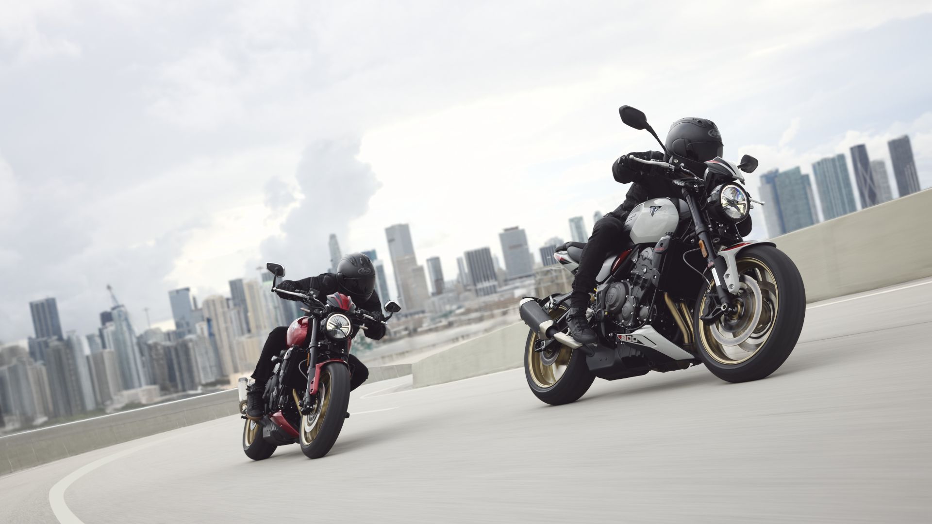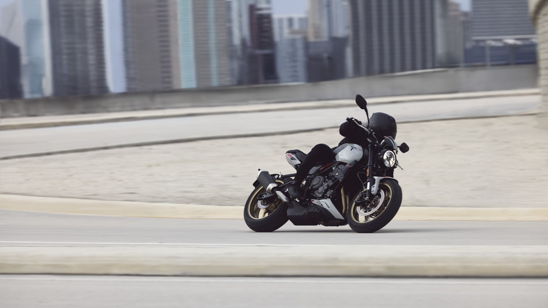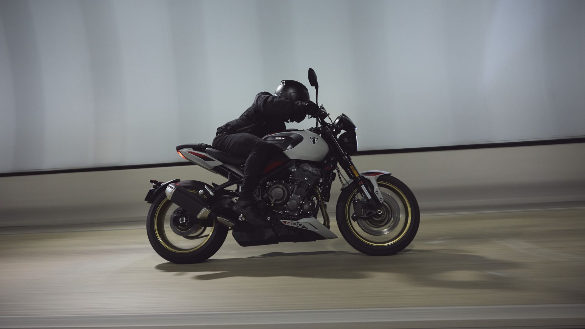 La nuova Trident 800 monta il motore già visto sulla cugina crossover, il 3 cilindri da 798 cc capace di 115 CV a 10.750 giri/min e 85 Nm (+1) a 8.500 giri/min con sistema di aspirazione e dell’airbox riprogettati, albero motore forgiato, alberi a camme e di bilanciamento, bielle forgiate e pistoni ad elevata compressione. Telaio e forcellone in acciaio sembrano imparentati con quelli della sorellina Trident 660, mentre l'upgrade rispetto alla 660 riguarda certamente le sospensioni Showa, una forcella SFF-BP Big Piston regolabile in compressione ed estensione da 120 mm di escursione e un mono regolabile in precarico ed estensione con 130 mm di escursione. Anche l'impianto frenante è mutuato dalla Tiger Sport 800, con dischi da 310 mm e pinze ad attacco radiale (dietro il disco è da 220 mm). Il peso della nuova Trident 800 è di 198 kg col pieno di carburante – il serbatoio è da 14 litri – mentre completano le misure più importanti, l'altezza della sella di 810 mm e l'interasse di 1.402 mm.