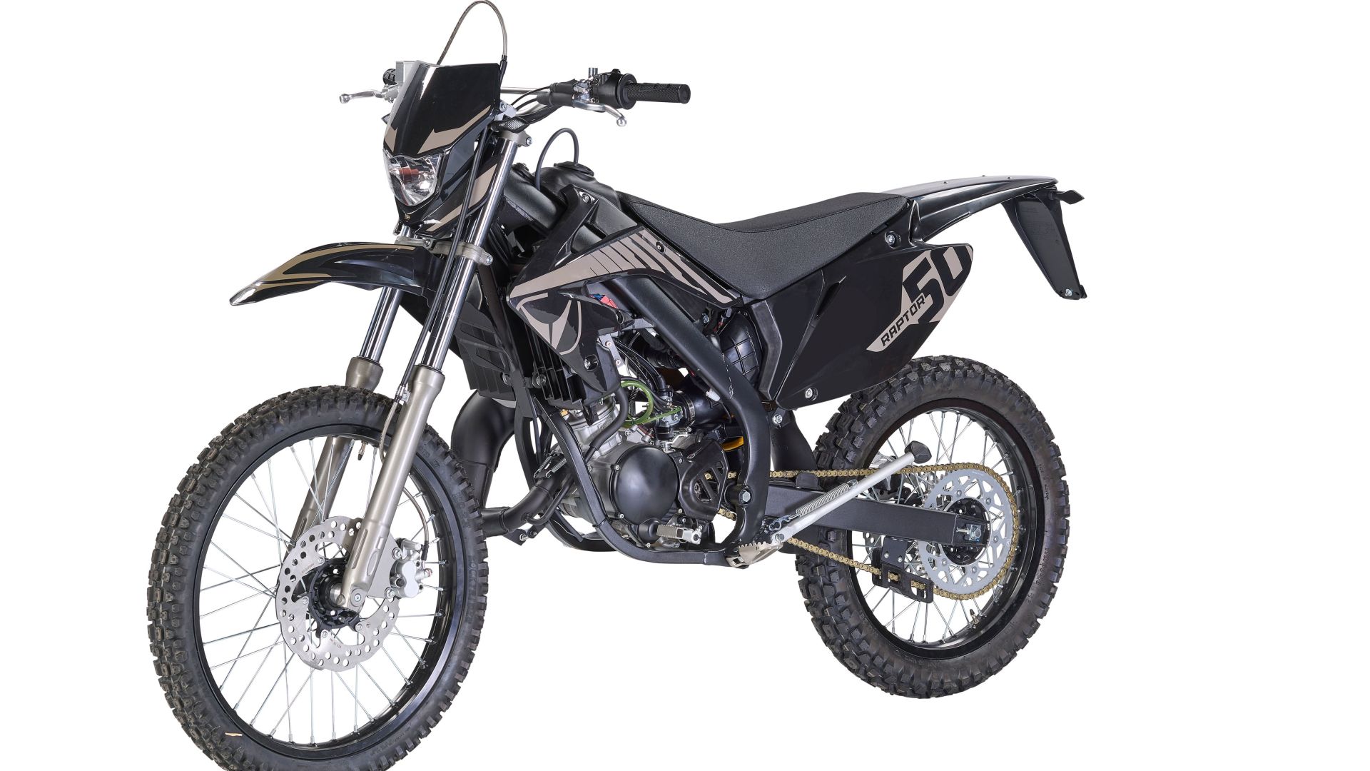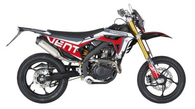 Per i piccoli emuli dei piloti, c'è Vent Raptor 50 moto derivata direttamente da quella che ha portato Mattia Cagnoni al traguardo della 99a edizione della Sei Giorni di Enduro. Per la Raptor 50 livrea nera, un telaio perimetrale derivato dalle moto da cross e la nuova motorizzazione Minarelli 50 cc 2T di ultima generazione. La ciclistica si affida a una forcella da 37 mm e a un monoammortizzatore, mentre i freni a disco Wave sono da 260 e 220 mm su ruote da 21'' e 18''. Il peso della Raptor 50 è di 89 kg a secco, con un serbatoio da 5,9 litri (l'altezza sella è di 910 mm). Nuova Raptor 50 è già disponibile sul mercato al prezzo di 3.150 euro.