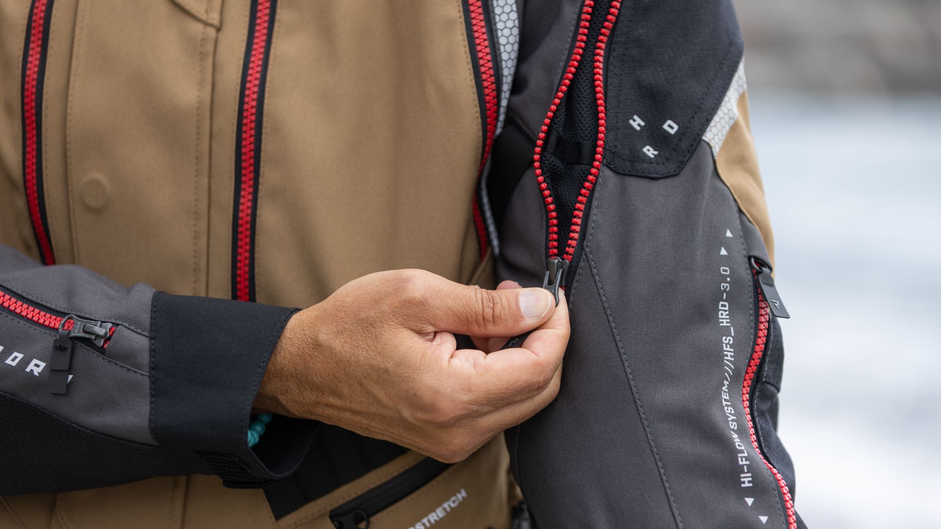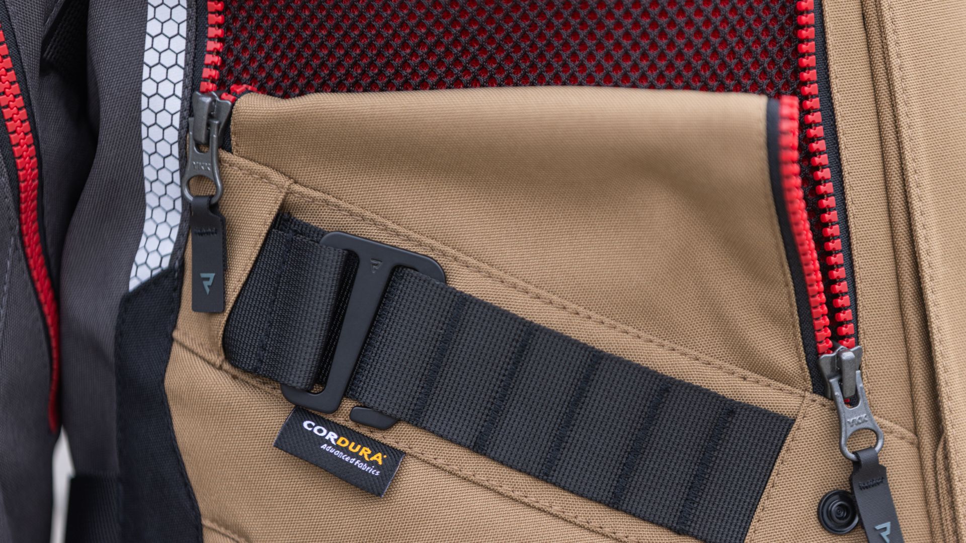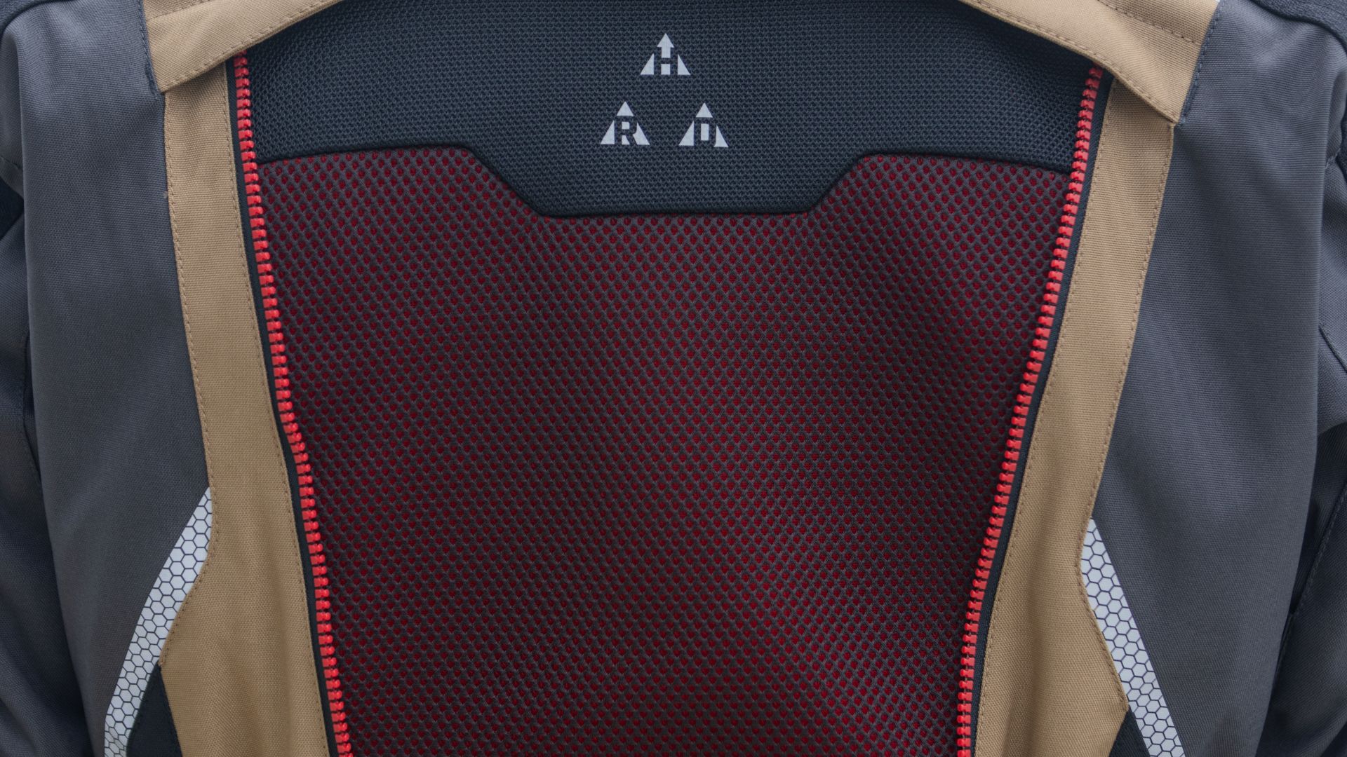 Lo strato più esterno, quello deputato alla protezione in caso di caduta, è realizzato in tessuto 4-way stretch in poliestere abbinato al resistente nylon Cordura, una combinazione che garantisce buona libertà di movimento e ottima resistenza all’usura. All’interno, invece, in base a quanto è freddo o piovoso il meteo sono inseribili una membrana impermeabile HydraShield™ In&Out - indossibile anche sopra allo strato esterno - e una giacca isolante rimovibile, indossabile anche quando si scende dalla moto.