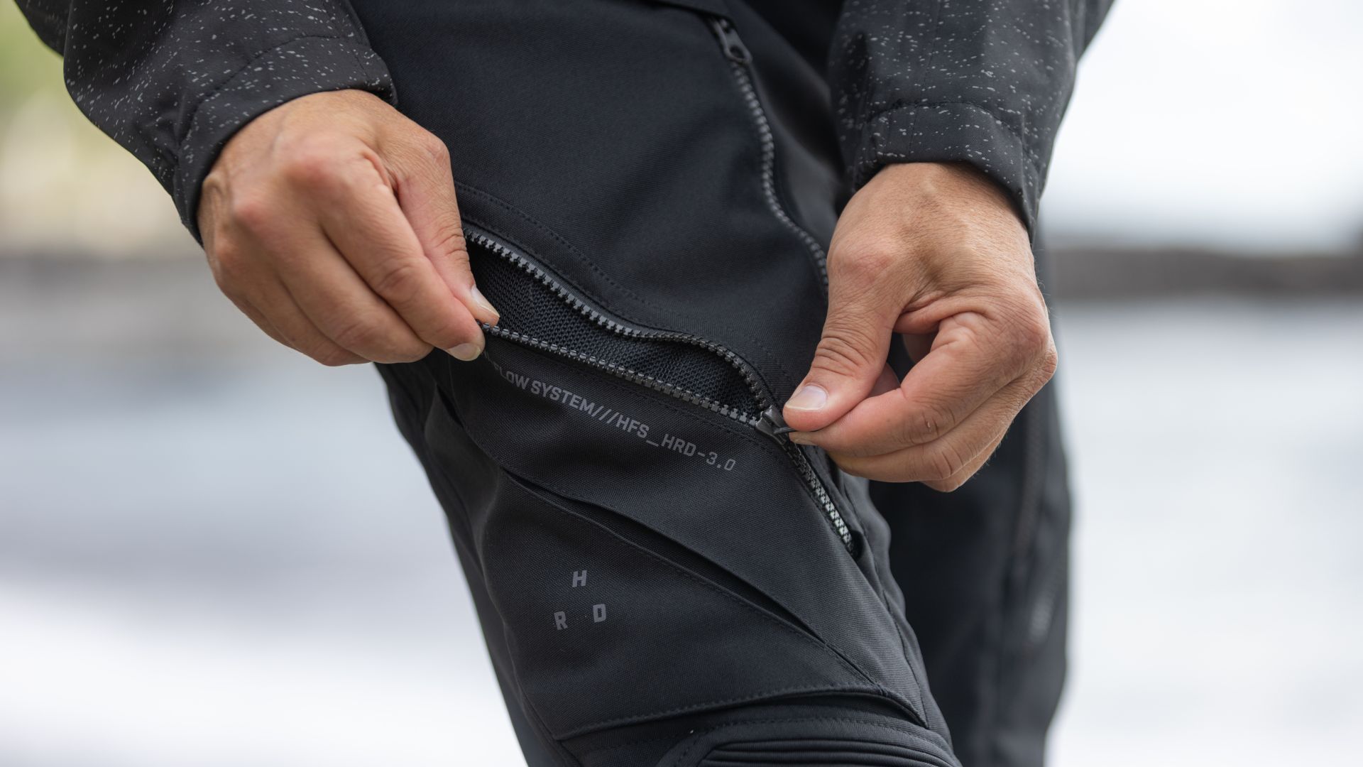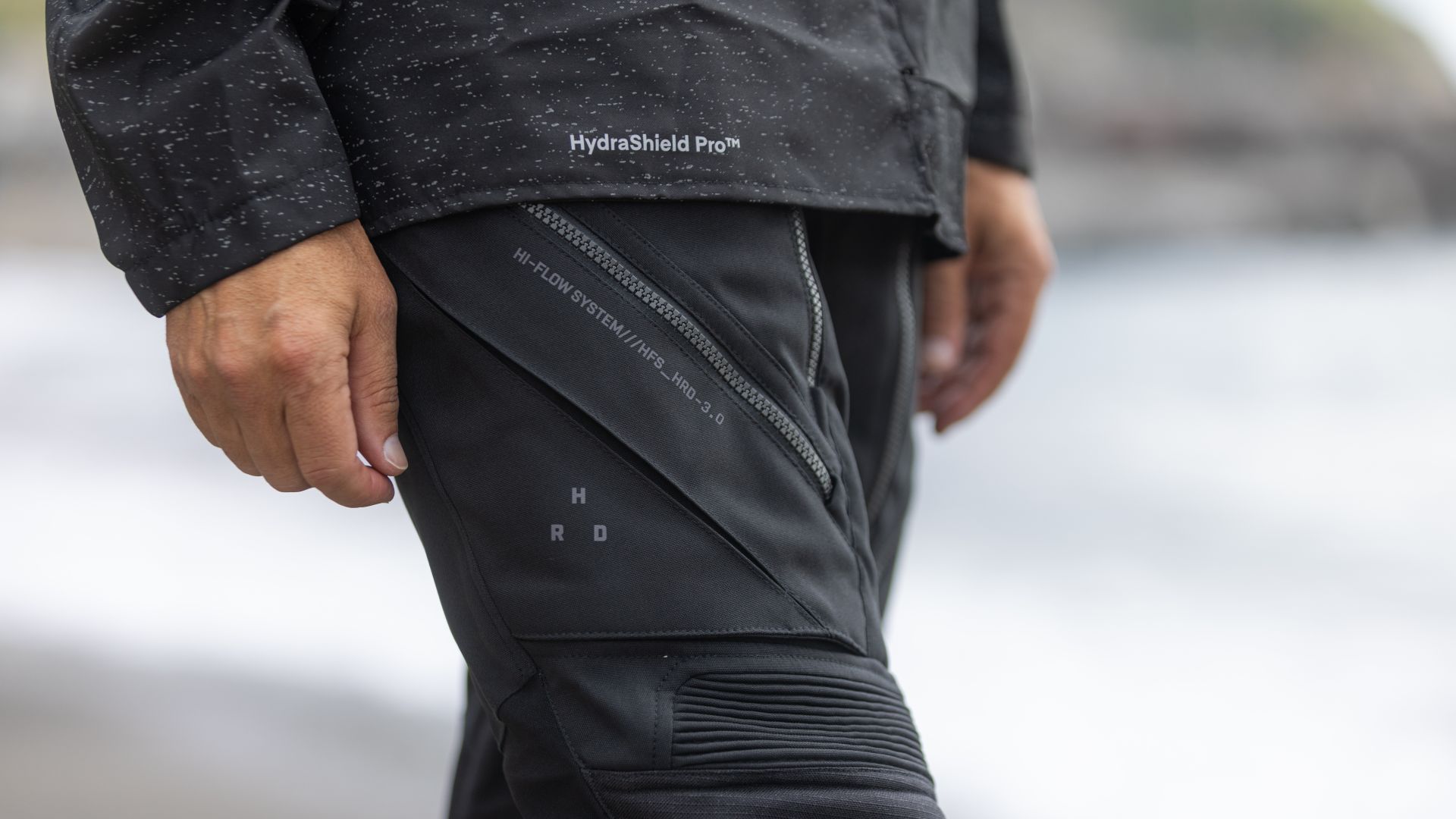 Da abbinare con la giacca c’è anche il pantalone Hardy 3.0, caratterizzato anche lui da una costruzione a tre strati: il più esterno è realizzato in tessuto Hyperstretch che asseconda i movimenti, al di sotto di esso si trova lo strato impermeabile HydraShield™ In&Out – collegabile con la giacca quando indossato sopra – e per finire l’imbottitura per i climi più rigidi. Così come per la giacca, anche il pantalone ha soluzioni pratiche per regolare il fitting, il posizionamento delle protezioni (certificate di livello 2) o la ventilazione. Caratteristica interessante è l’utilizzo di materiale resistente alle alte temperature nella zona interna delle gambe, quella che accidentalmente può venire a contatto con le parti roventi del motore o dello scarico.