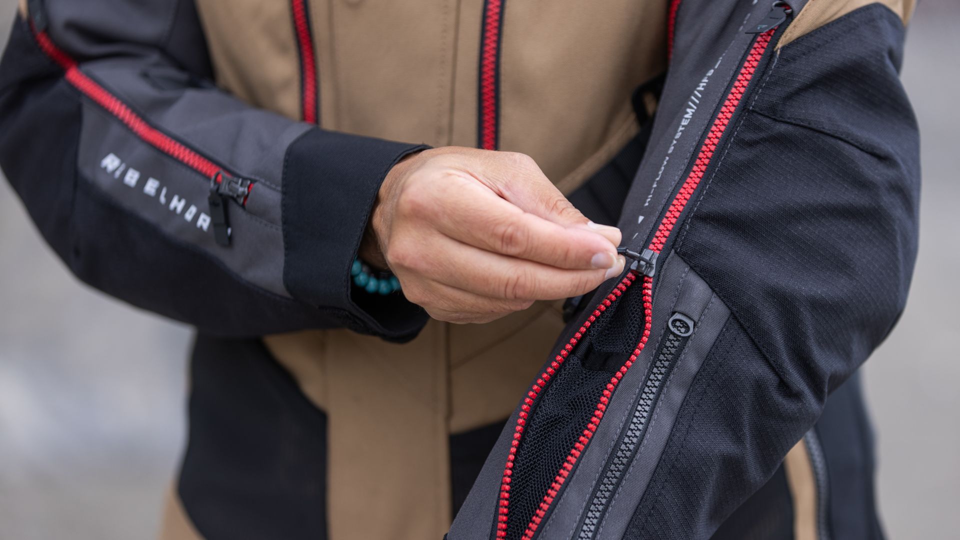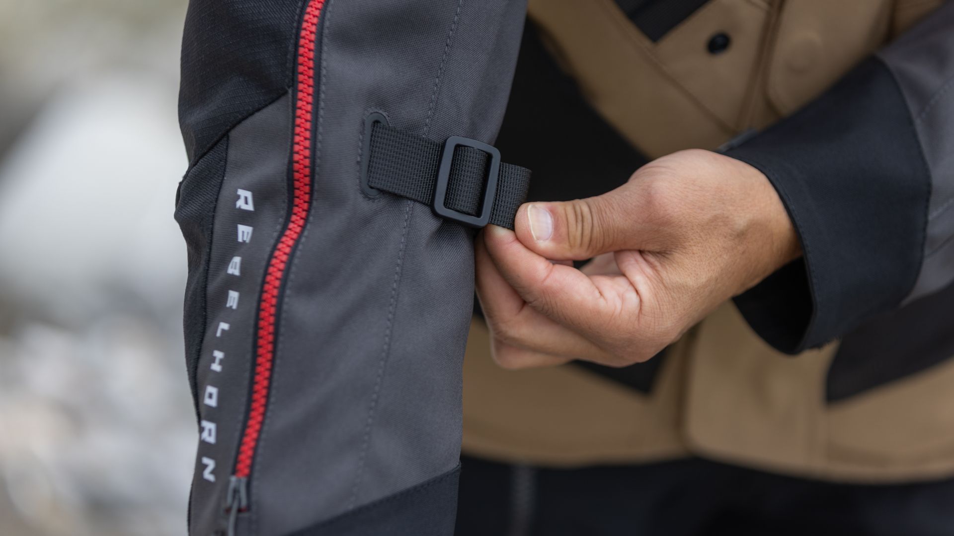 La sicurezza è al centro del progetto: la giacca monta protezioni CE-Level 2 su spalle e gomiti (queste ultime regolabili) e include un protettore dorsale. La vestibilità è completamente personalizzabile grazie ai sistemi di regolazione su avambracci, bicipiti, vita e collo, oltre che sull’area della schiena. Mi ha convinto anche il sistema di chiusura frontale, che sfrutta una patta magnetica che resta fissata in posizione sia aperta che chiusa, per la massima praticità.