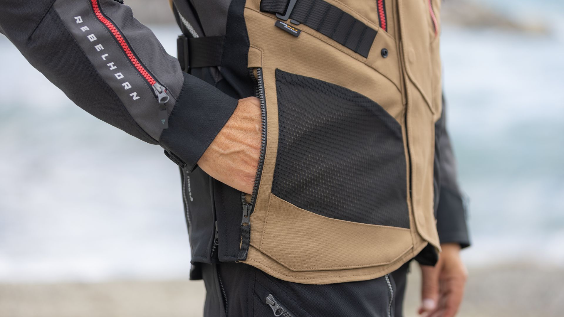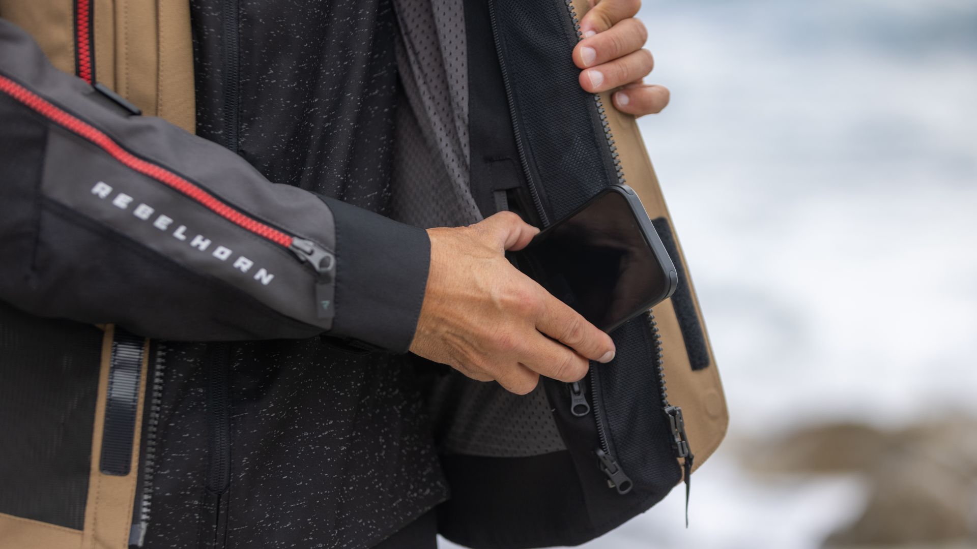 Non mancano tasche capienti e ben distribuite, due tasche esterne di grandi dimensioni, due tasche frontali ad asciugatura rapida, una tasca interna impermeabile e due più piccole, ma non per questo meno pratiche, dedicate alle chiavi e alle tessere, utile per i pagamenti dei pedaggi senza dover togliere i guanti o ravanare in chissà quale tasca alla ricerca del portafogli. Molto “adventure” la tasca posteriore con zip laterale ideale per riporre oggetti voluminosi.