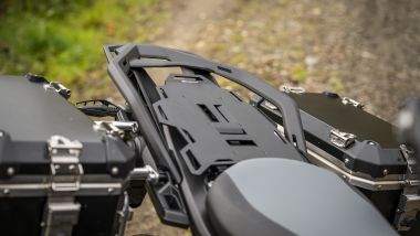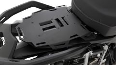 IL PORTAPACCHI L'altra novità, sempre riservata ai possessori della R 1300 GS, è il portapacchi Wunderlich che si posiziona al posto della sella passeggero. Per tutti quei motociclisti che viaggiano da soli e vogliono sistemare i bagagli vicino al baricentro della moto, infatti, è la soluzione ideale: 4 differenti versioni, per GS dotate di Comfort Package e GS che ne sono sprovviste, il portapacchi è realizzato a mano in alluminio di colore nero, spesso 4 mm. La lunghezza del portapacchi è di 313 mm, la larghezza di 280 mm: questo accessorio Wunderlich per R 1300 GS è prodotto in Germania, garantito 5 anni e venduto al prezzo di 204,94 euro.