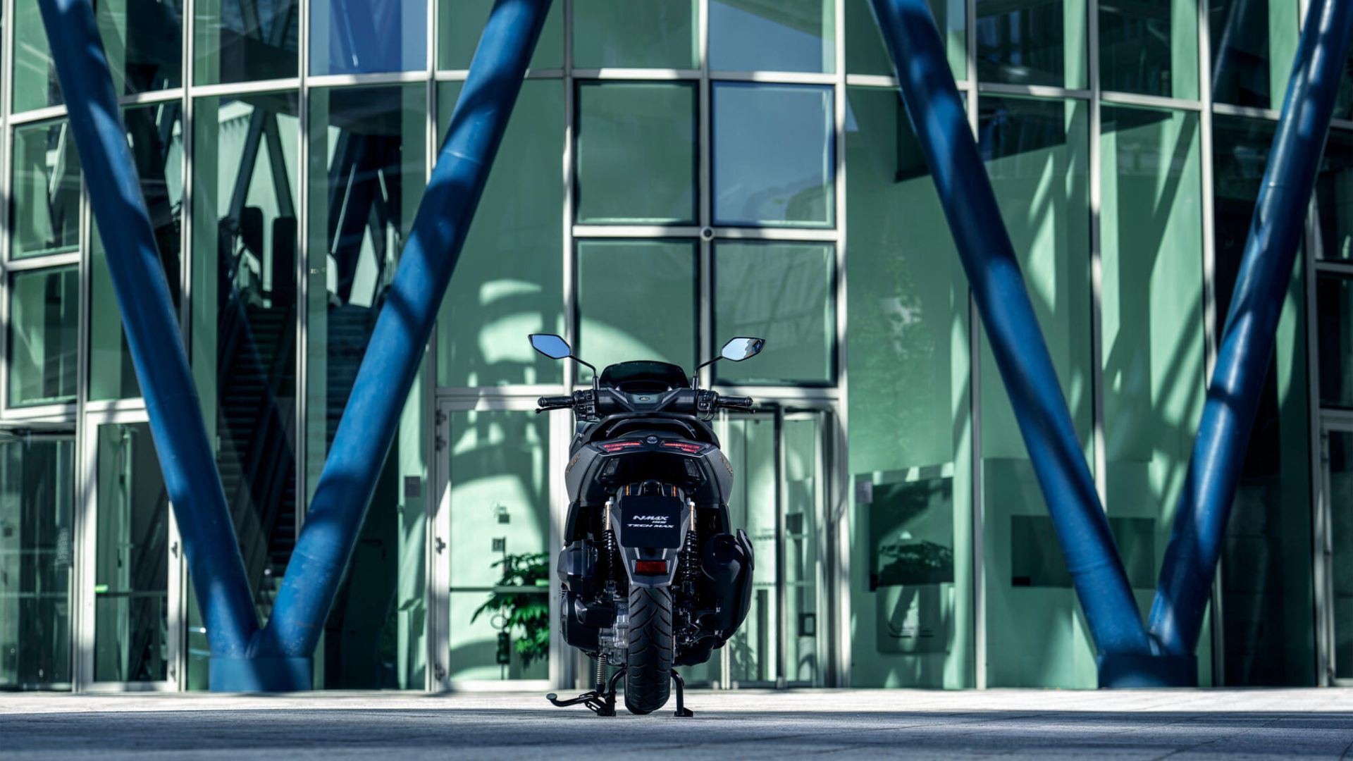 Per il nuovo NMax 155 Tech Max la ciclistica ricalca quella della versione 125, tra forcella telescopica e doppio ammortizzatore al posteriore – 100 e 91 mm di escursione – doppio freno a disco da 230 mm con ABS e cerchi da 13'' con pneumatici 110/70 e 130/70. Per NMax 155 sella a 770 mm e un peso di 135 kg col pieno (7,1 litri di serbatoio).