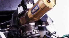 Qualcosa di vistoso c’è: il poderoso forcellone a due bracci. Colpisce non tanto la superficie dei radiatori, quanto le paratie che la circondano e la vistosa bocca sopra il parafango anteriore. Comunque una volta rimontate le plastiche (Pardon..le carbonie???) si ingloba tutto e non si vede più nulla. Rivestita, la M1 riprende il suo aspetto da GP 500, se non fosse per il lungo quattro in uno a sigaro al posto dei soliti quattro scarichi contorti. Tornando al quattro cilindri, di sicuro si sa solo che ha la testa a 20 valvole, probabile ma non ufficiale l’iniezione elettronica.