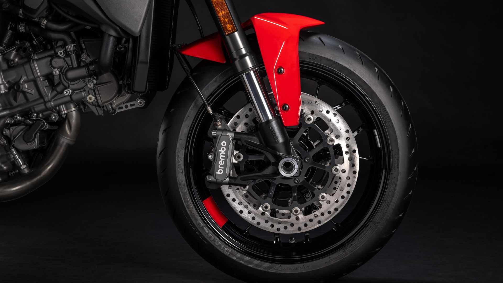 Al posteriore spicca il forcellone in alluminio, chiaramente ispirato nelle forme a quello della Panigale V4, abbinato a un nuovo telaietto reggisella dalla struttura mista, che combina un traiccio in acciaio e tecnopolimeri GFRP. Cambia anche l’attacco del telaietto, soluzione che lascia più in vista il monoammortizzatore orizzontale, enfatizzando il look muscoloso della naked bolognese.