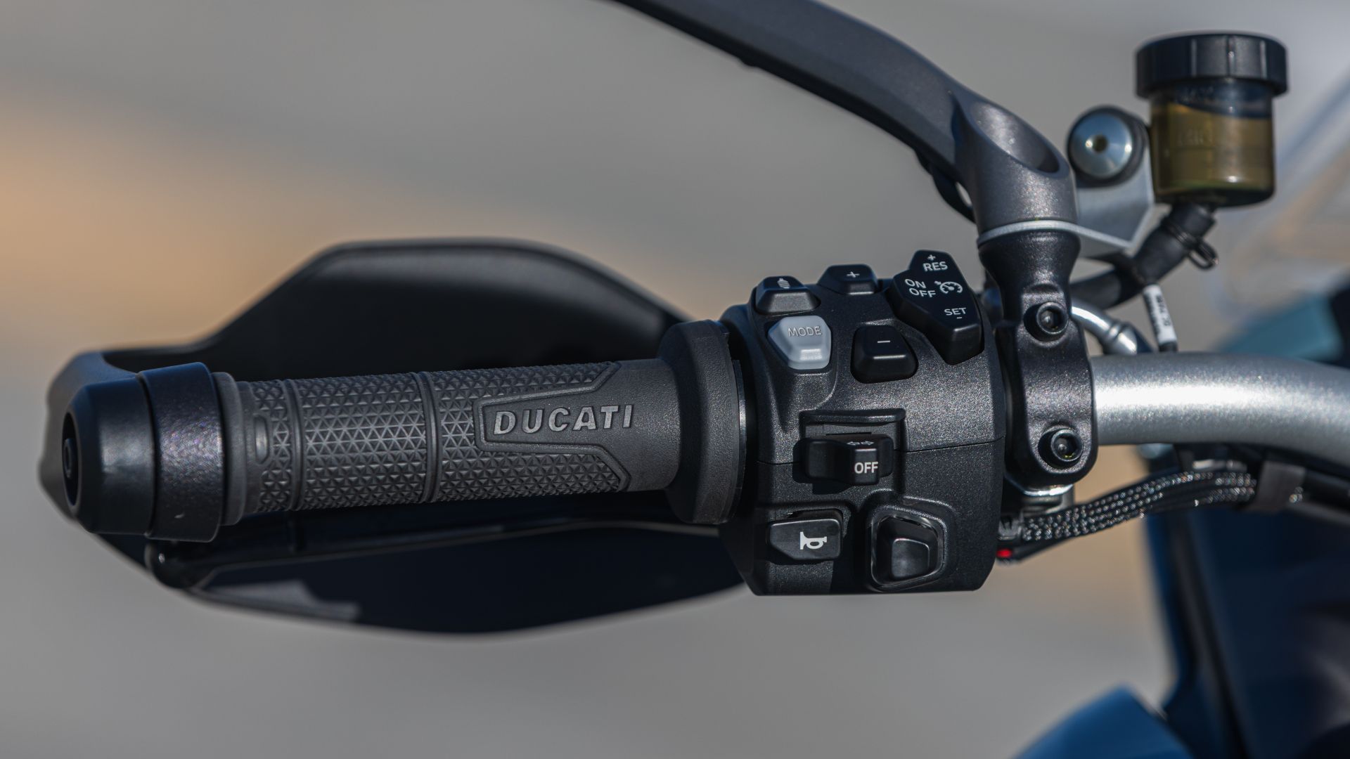 La formula che distingue la Rally dalla versione S resta immutata: serbatoio da 30 litri, cerchi a raggi, protezioni più robuste, plexi maggiorato e sospensioni Ducati Skyhook Suspension Evo con corsa da 200 mm e luce a terra di 230 mm. Il cuore dell’aggiornamento riguarda però le logiche di funzionamento delle sospensioni semi-attive Marzocchi, dotate di una logica di funzionamento rivista. Ora si può intervenire sulla frenatura idraulica anche in marcia e indipendentemente dal riding mode, oppure affidarsi alla nuova modalità totalmente automatica che legge strada, stile di guida e condizioni dinamiche in pochi millisecondi. Confermata la funzione Autoleveling e ampliato il range del precarico posteriore, mentre il pivot del forcellone è stato alzato di 1 mm per migliorare l’effetto anti-squat.
