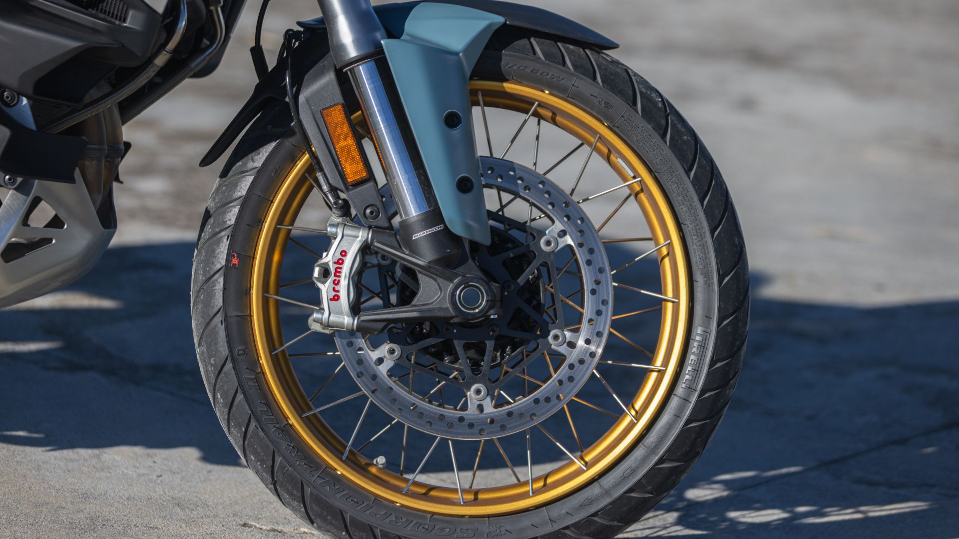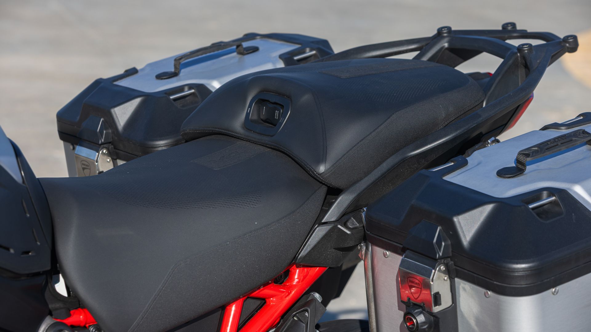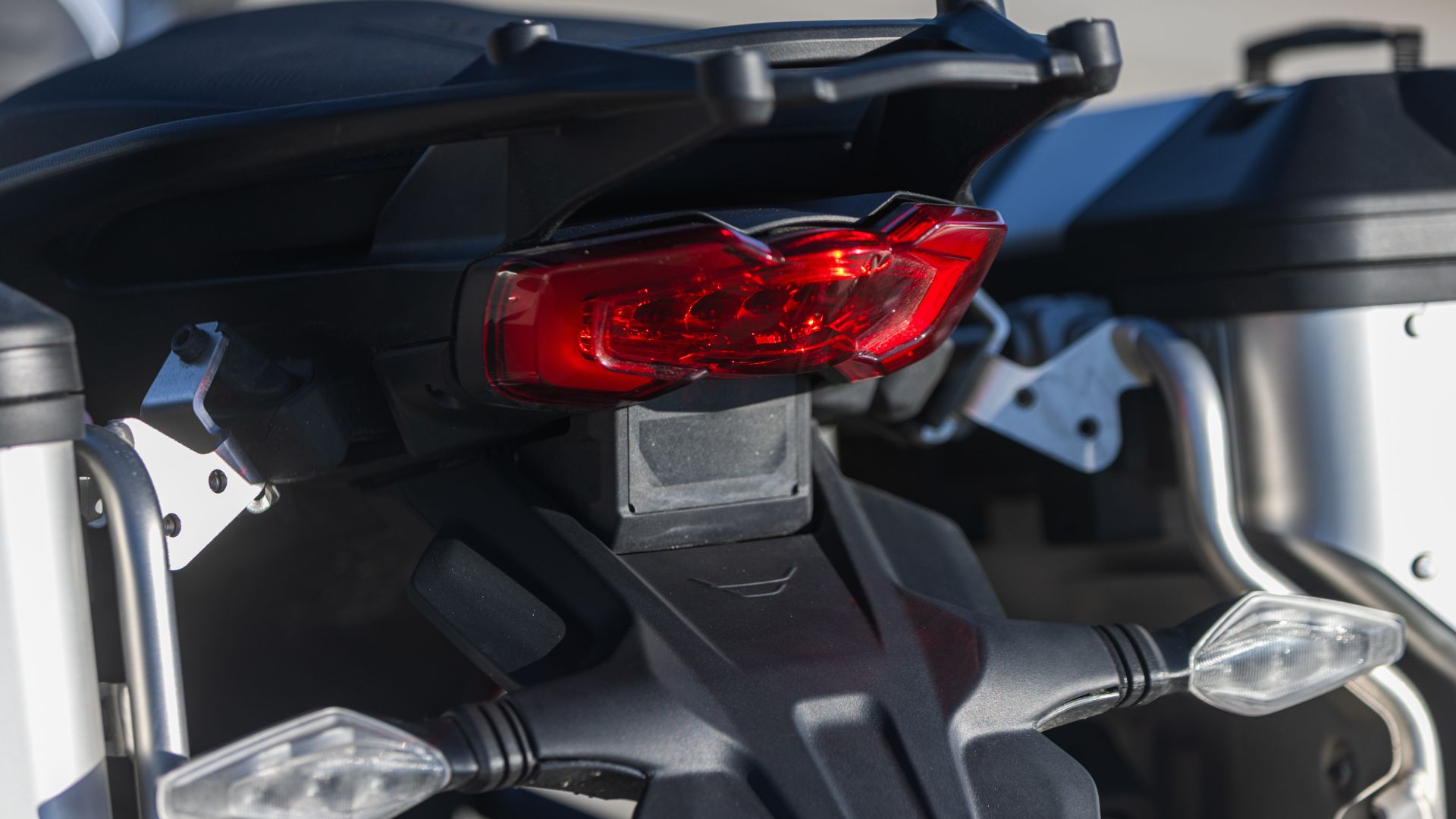 L’equipaggiamento dedicato al viaggio comprende mappa Enduro da 114 CV, parabrezza più grande, cornering lights migliorate, radar con ACC, BSD e Forward Collision Warning, cavalletto centrale ridisegnato e manopole riscaldabili di serie.