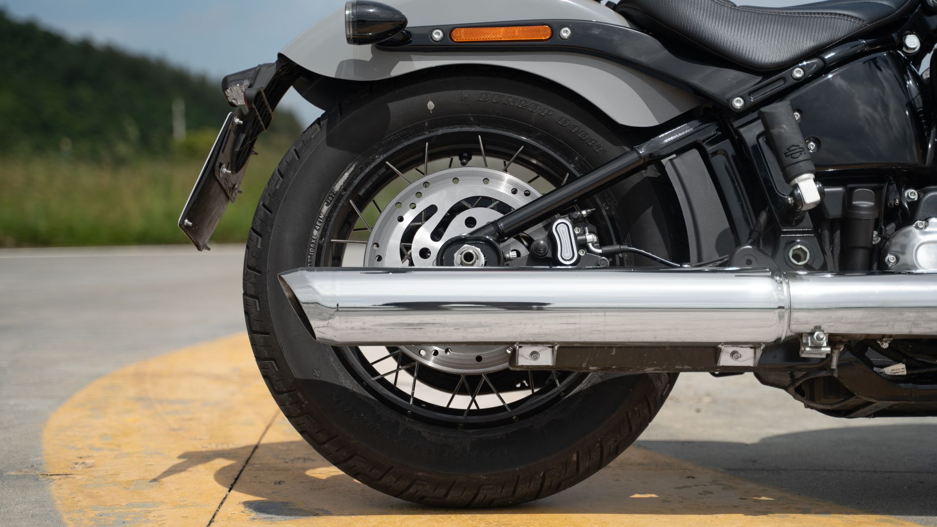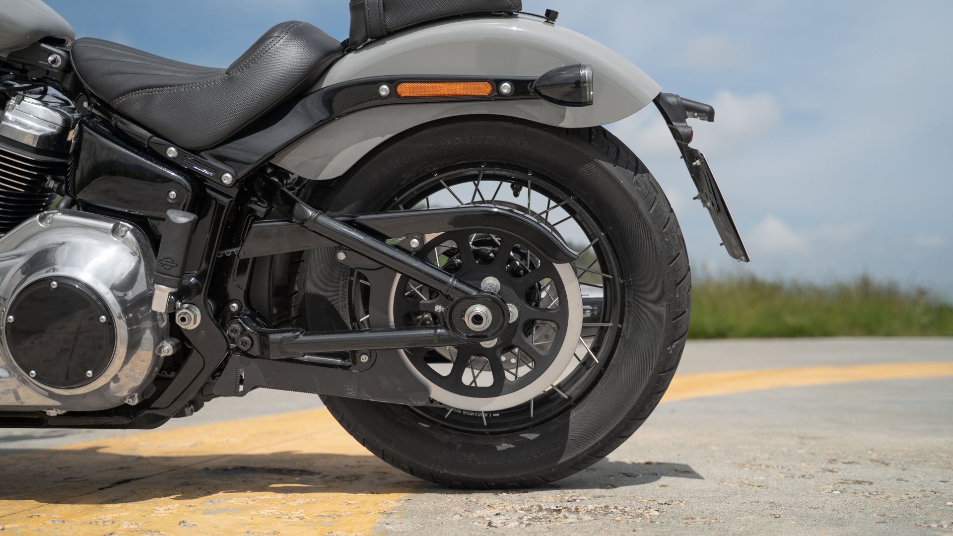 La base tecnica resta fedele alla gamma Softail: telaio classico che richiama le hardtail del passato, ma con monoammortizzatore regolabile ben nascosto.