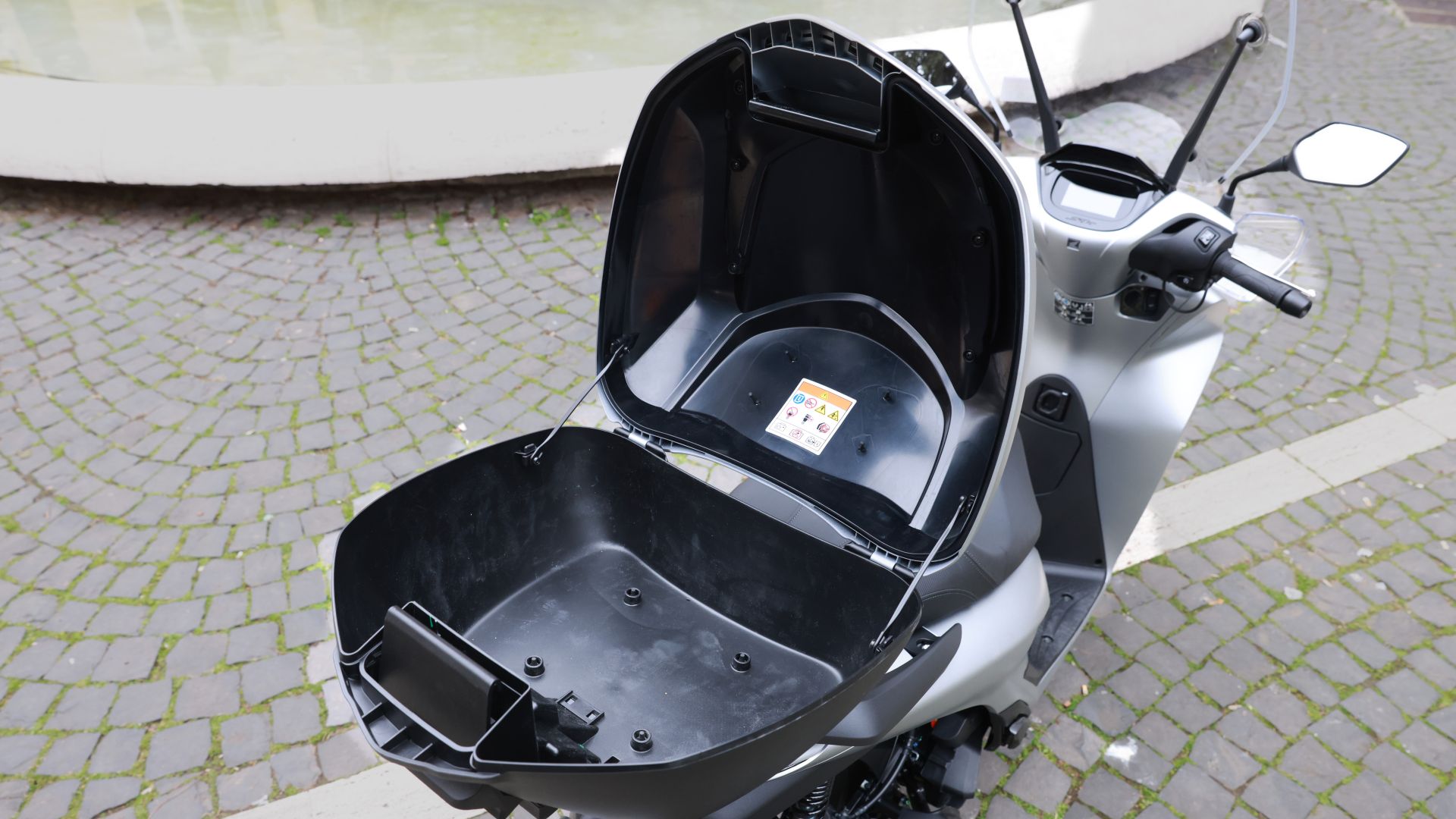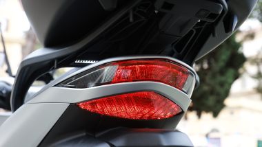 Concludiamo la parte delle dotazioni con lo Smart Top Box, più comunemente chiamato ''bauletto''. Anche lui mantiene i 35 litri di capacità ma aggiorna il sistema di apertura: è sempre Smart, pertanto la chiave resta in tasca – dovete premere il pulsante sotto la piastra – ma in più aggiunge la chiusura classica con ''molla''. Un aggiornamento che richiede un po' di tempo in più ma evita accidentali aperture.