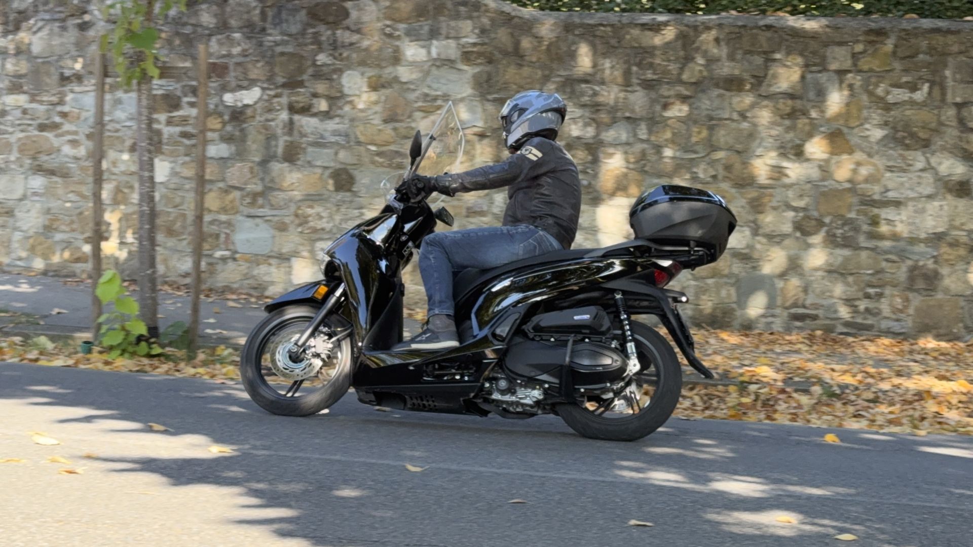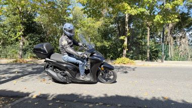 Se il feeling di guida con SH350i non è davvero niente male e lo scooter è capace di tenere un passo molto interessante, l'efficacia delle sospensioni nella guida sportiva deve scendere a patti con un assetto al posteriore un po' sostenuto: quando l'asfalto è rotto o con un passeggero, insomma, qualche scossone è da mettere in conto. Ultime note ''stonate'' – si fa per dire – sono il display, ricco nelle informazioni ma un po' piccolo e non troppo facile da consultare con il sole alto. Ho riscontrato anche una certa dose di vibrazioni a bassa frequenza lato bauletto che si intensificano se si tringe la leva del freno posteriore. Niente di fastidioso ma, per un Honda, fa comunque strano!