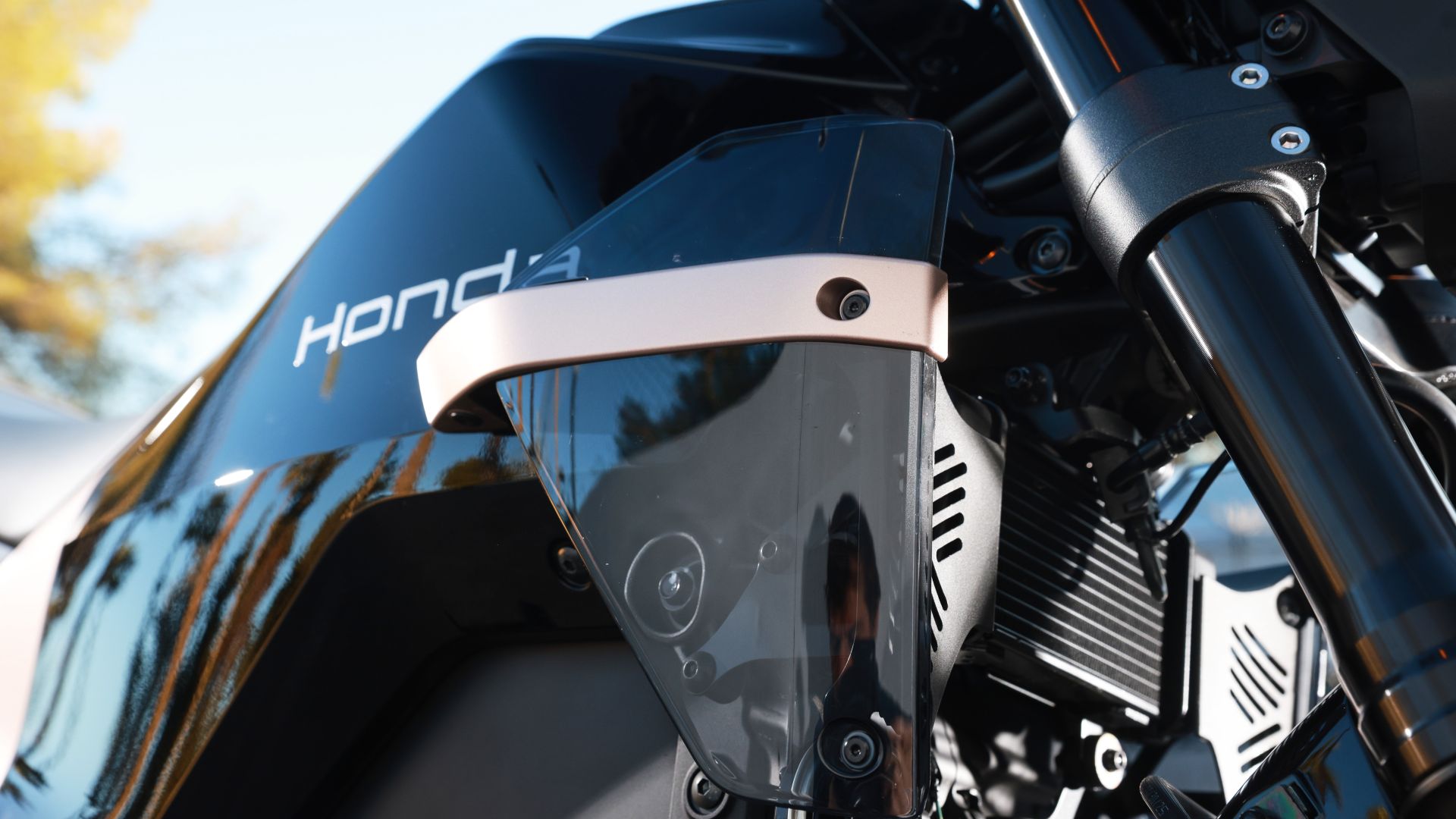 Per garantire il giusto feeling, ma anche la necessaria rigidità torsionale, gli ingegneri hanno dovuto realizzato un supporto ad hoc per il fissaggio del cannotto di sterzo, così come hanno preferito collegare direttamente il motore elettrico all’inverter, risparmiando peso e mantenendo il look più pulito e ordinato senza cavi dell’alta tensione in vista. Altre chicche sono la gli ingranaggi con taglio elicoidale per gli ingranaggi del motore (scelta adottata solo sulla Goldwing) del motore e la trasmissione finale a cinghia, prima assoluta per una moto Honda.