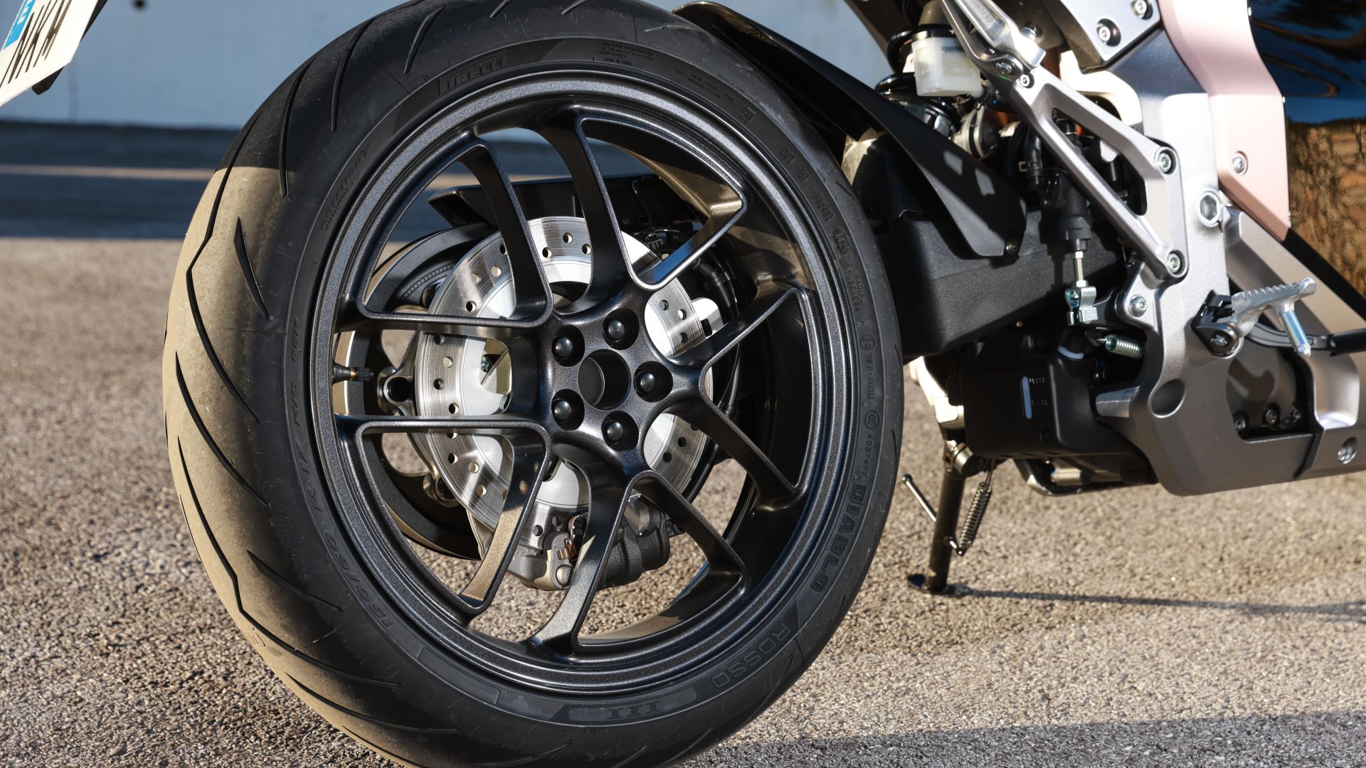 Peccato che dal punto di vista della ciclistica Honda abbia optato per sospensioni Showa non regolabili (forcella da 43 mm) se non nel precarico dell’ammortizzatore posteriore. I freni sono firmati Nissin – con pinze radiali e dischi da 296 mm davati, 256 mm il diametro del disco posteriore – mentre gli pneumatici di primo equipaggiamento sono Pirelli Diablo Rosso III. Il peso della moto è di 217,5 kg.