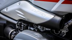 GUSTO RÈTRO, SICUREZZA MODERNA Man mano che il ritmo si alza, le curve vanno impostate. Il passo di 1.491 mm e l'ammortizzatore di sterzo favoriscono la stabilità sul veloce, ma penalizzano l'agilità nei cambi di direzione e la R nineT Racer non è tra le moto che aggrediscono la corda con più ferocia. Rimane il piacere di guidare – e di mostrare – una moto di grande impatto emozionale, che da ferma come in movimento replica sensazioni d'altri tempi, ma con tutta la sicurezza e l'affidabilità di un prodotto attuale.