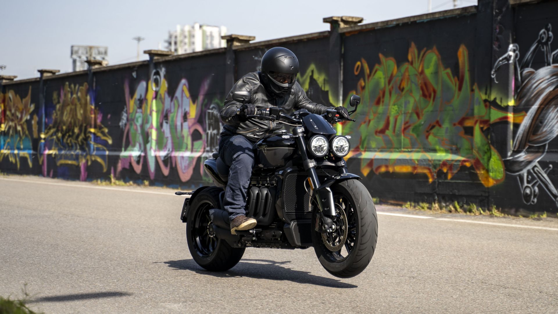 PORTENTO DI SPINTA È innegabile però che il vero protagonista dell'esperienza di guida sia il motore. A passeggio sa essere docile, una mano amichevole che spinge delicata ma vigorosa sulla schiena, ma è quando si ribalta la manopola dell’acceleratore che emerge il vero carattere del duemilaecinquecento – tutto attaccato e in lettere si capisce meglio – un vero portento di spinta. Immaginate di vivere l'esperienza di una super sportiva con il launch control inserito e il motore bello su di giri che parte a razzo. Prima, seconda, terza marcia, le velocità si fanno folli… con la Rocket è lo stesso, ma praticamente in ogni marcia e a qualsiasi regime. Una catapulta che ribalta le leggi spaziotemporali. Le reazioni che ho avuto provando a snocciolare tutte le marce sono state le seguenti: risata compiaciuta, risata isterica, strizza, panico, panico con visioni celestiali! Provate voi a rimanere in sella a un toro infuriato che va da 0 a 200 km/h nel tempo in cui solitamente ci si allaccerebbe una scarpa!