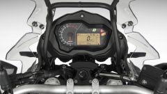 NON MANCA NULLA Nonostante il prezzo d’acquisto molto più che interessante (5.990 euro!) a bordo della TRK 502 non manca nulla. All’appello troviamo un bel cupolino in plexiglass ben protettivo, paramani, presa usb per ricaricare i propri device o alimentare un navigatore GPS, telaietti laterali a protezione dell’immenso serbatoio di carburante (non le vedete nelle immagini perché Benelli ha deciso di presentare la moto senza) e telaietti laterali predisposti per ospitare i borsoni che potrete comodamente scegliere dal catalogo Givi.