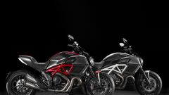 VERSIONI Come tradizione vuole, oltre al modello "base", disponibile nella sola livrea nera, è prevista anche la versione Carbon. Cosa cambia? Come si intuisce dal nome, in questa il carbonio regna sovrano in ogni dove. La Diavel Carbon è disponibile nelle colorazioni Carbon Red, rosso lucido su trama matte carbon con telaio rosso e Star White Carbon bianco lucido su trama matte carbon e telaio bianco. Oltre alla cover serbatoio e il copri codone in carbonio, a favore di una maggiore leggerezza e di riflesso maneggevolezza, la versione Carbon è equipaggiata con cerchi forgiati Marchesini. Il prezzo della Diavel è di 17.990 euro, mentre l'allestimento Carbon costa 21.490 euro.