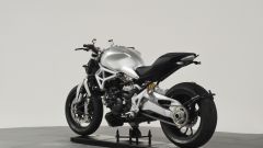 PUTRELLE Anche la ciclistica è stata stravolta rispetto alla 1100. Rimane infatti l'iconico telaio a traliccio, ma ora i punti di attacco sono sulle teste del motore, che diventa vero e proprio elemento portante del telaio (un po’ come sulla Panigale per intendersi). Di conseguenza sono cambiate anche le quote: l’interasse cresce di 60 mm (ora a quota 1.511 mm), con un’angolazione del cannotto/avancorsa di 24,3°/93,2 mm. Il manubrio è più alto di 40 mm e più vicino al pilota di 40 mm, mentre il baricentro è 43 mm più indietro e 20 mm più in basso. La sella è stata completamente ridisegnata con una superficie ad alta aderenza e ora c’è anche un sistema di regolazione dell'altezza della seduta: dagli 810 mm standard si può arrivare fino a quota 785mm. Nuovo è anche il serbatoio in acciaio, da ben 17,5 litri, le leve freno e frizione integrate sulle pompe radiali, e il forcellone monobraccio (che adesso integra la batteria), color bronzo. In totale, la nuova Monster pesa solo 182 chili a secco.