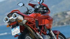 MULTISTRADA Ha tanta coppia in basso, riprende bene in sesta dai 2000 giri in su. Non è un motore che ama girare in alto: dopo i 5000 giri la coppia inizia a scendere, fino a 6000/6500 giri si tira ancora ma poi conviene passare alla marcia superiore per avere più spunto. Una evoluzione ben adattata allo spirito della Multistrada: ottimo per il passeggio, pronto a scattare se si apre il gas con decisione. È un attimo far pattinare la ruota posteriore sullo sterrato o farla impennare.
